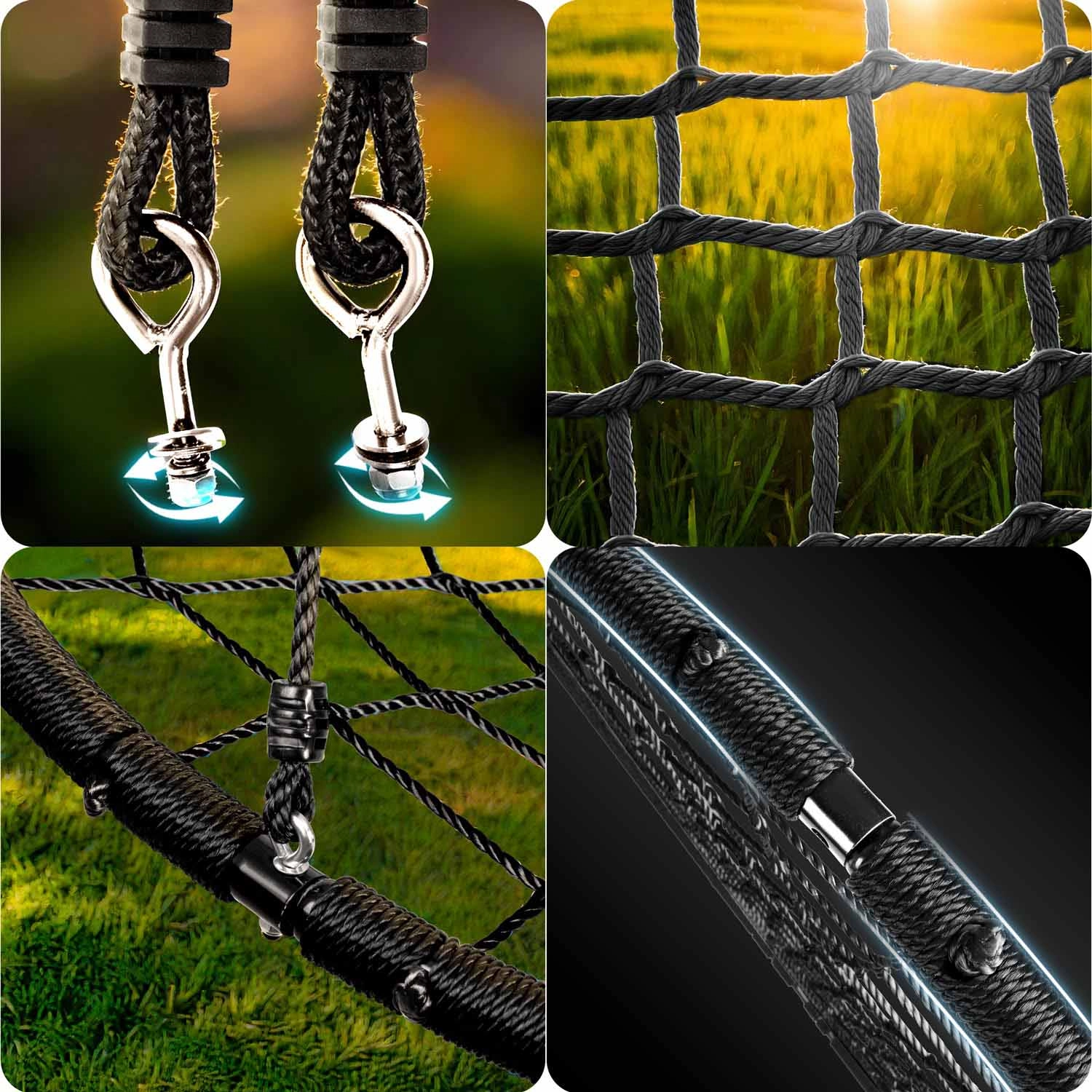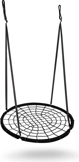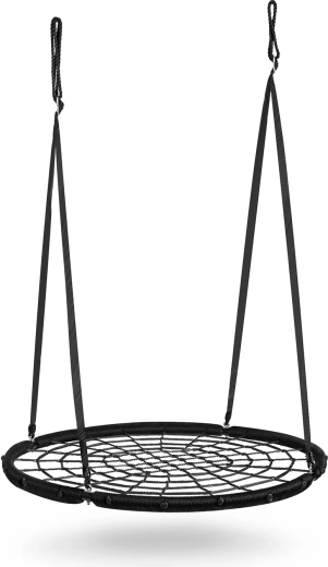 Diese große, runde Nestschaukel bietet Kindern und Erwachsenen jede Menge Spaß und Entspannung. Der robuste Stahlrahmen mit PE-Ummantelung und das Geflecht im Stil eines „Spinnennetzes“ gewährleisten hohe Stabilität, Sicherheit und eine lange Lebensdauer. Dank der leicht zu reinigenden und wasserabweisenden Materialien bleibt die Schaukel über ganze Saisons hinweg schön und funktional.