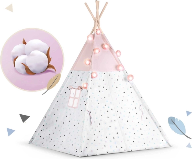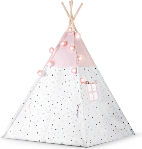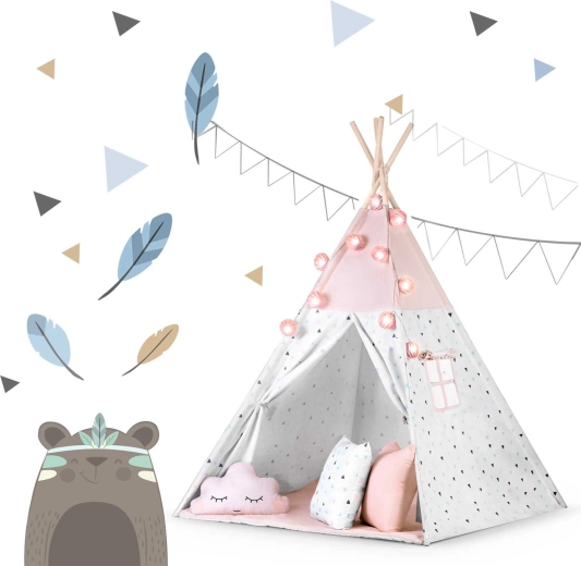 Das Kinder-Tipi NUKIDO in zarten Rosatönen ist ein Highlight im Kinderzimmer. Die atmungsaktive Premium-Baumwolle (175 g/m²) ist weich, langlebig und angenehm im Griff, während die Holzstangen aus Fichte Stabilität und eine lange Lebensdauer gewährleisten. Dank des schnellen Aufbaus und der leichten Konstruktion lässt sich das Tipi mühelos vom Zimmer auf die Terrasse oder in den Garten tragen.