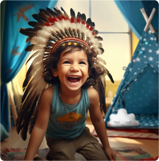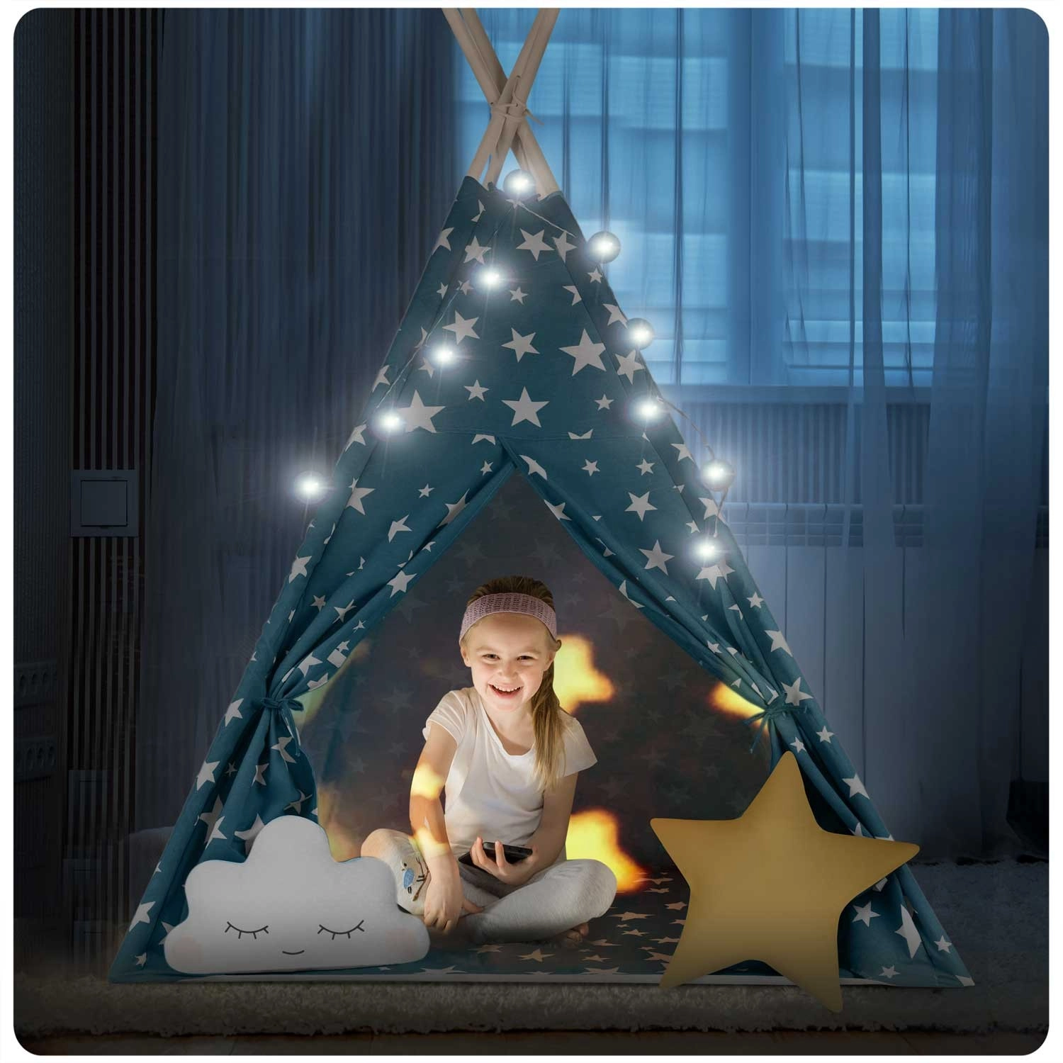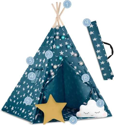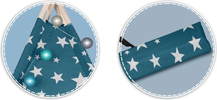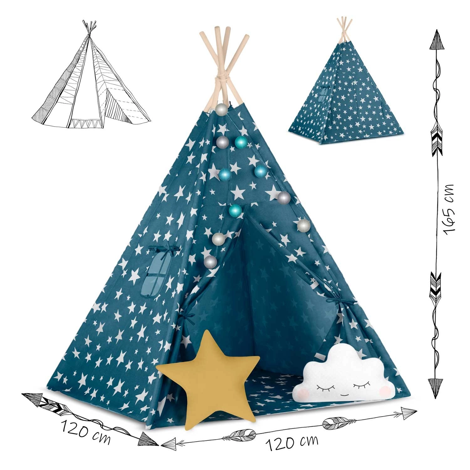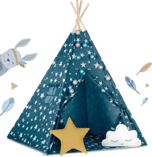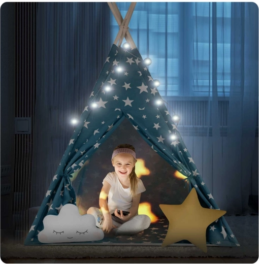 Die atmungsaktive 100% Premium-Baumwolle (175 g/m²) gewährleistet Luftzirkulation und hält auch den wildesten Abenteuern stand. Stabile Kiefernstäbe geben der Konstruktion sicheren Halt, gleichzeitig lässt sich das gesamte Tipi schnell zusammenklappen und transportieren – ins Wohnzimmer, ins Kinderzimmer oder draußen in den Schatten.