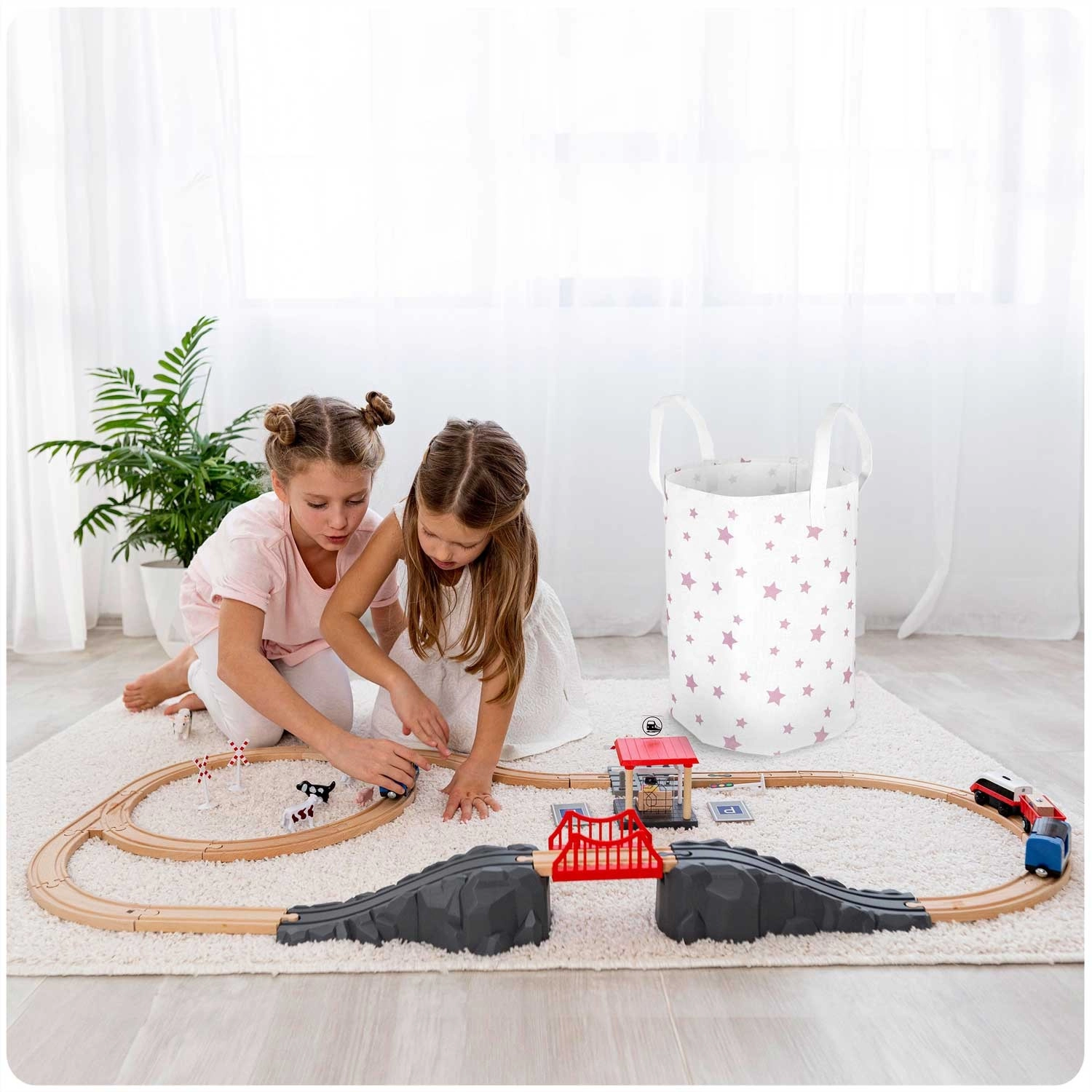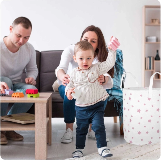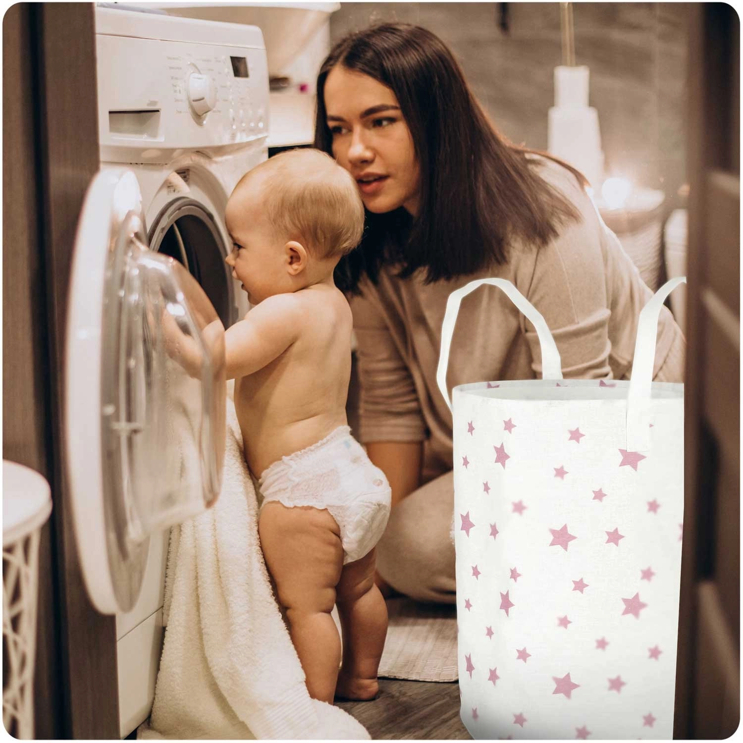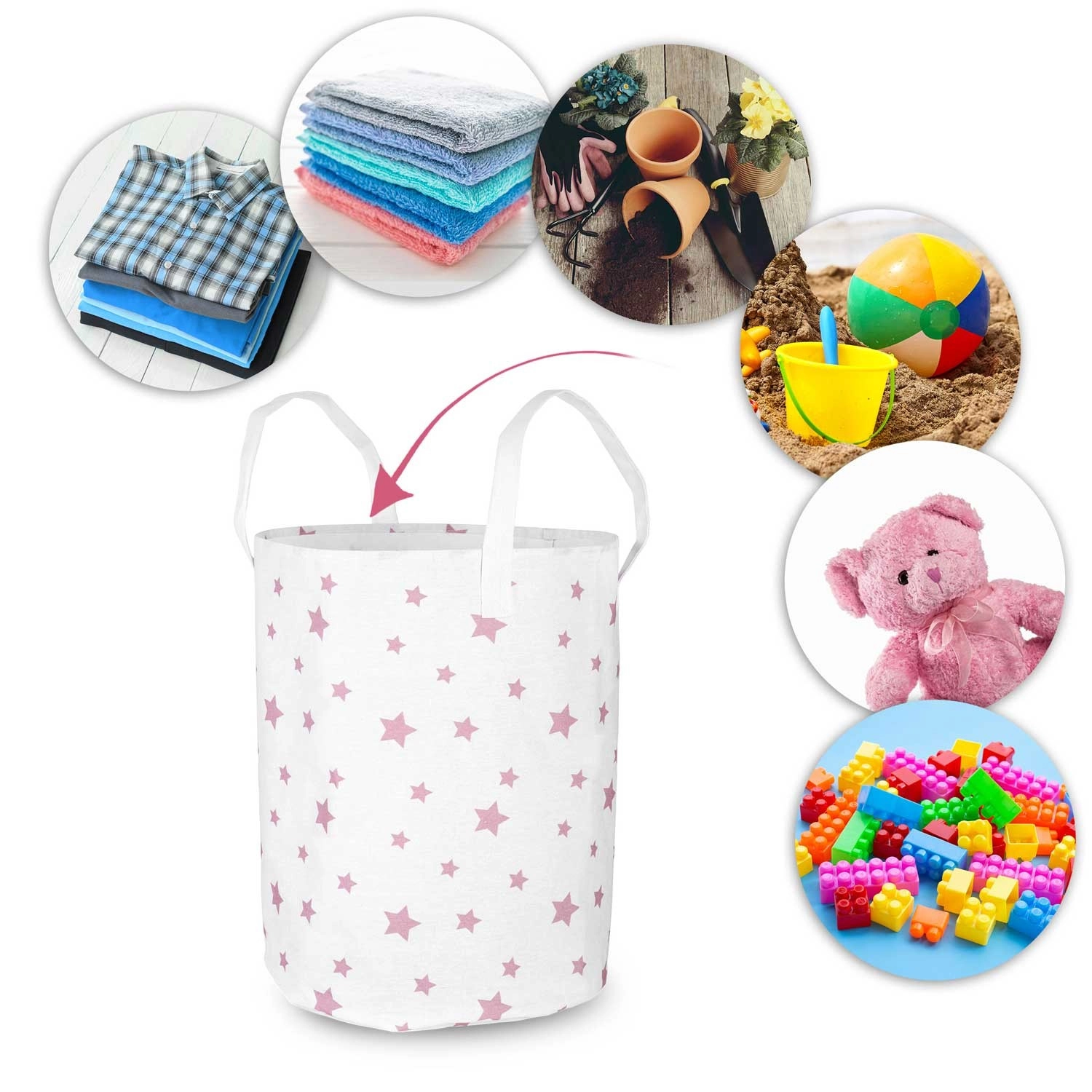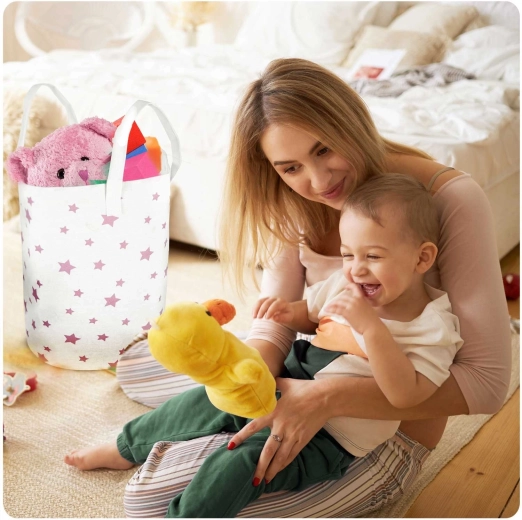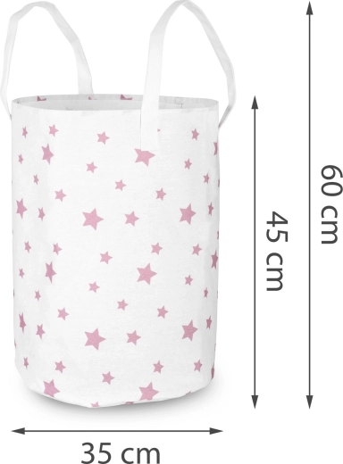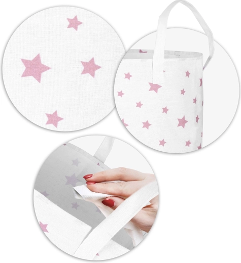 Der stilvolle Nukido Korb bietet eine clevere Lösung zur Aufbewahrung von Spielzeug, Wäsche oder Textilien. Das zarte Muster mit rosa Sternchen rundet die Einrichtung von Kinderzimmer, Spielzimmer oder Bad ab und hilft, Unordnung im Handumdrehen zu beseitigen. Dank der leichten, aber robusten Textilkonstruktion lässt sich der Korb mühelos dorthin tragen, wo Sie ihn brauchen.
