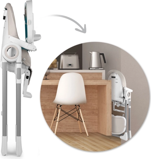 Zusammengeklappt benötigt der Stuhl minimalen Platz und ist somit ideal auch für kleinere Wohnungen. Die Zertifizierung EN 14988 bestätigt die Einhaltung strenger europäischer Standards. Nukido Belo ist damit eine praktische Lösung von den ersten Beikostmahlzeiten bis zum eigenständigen Essen.