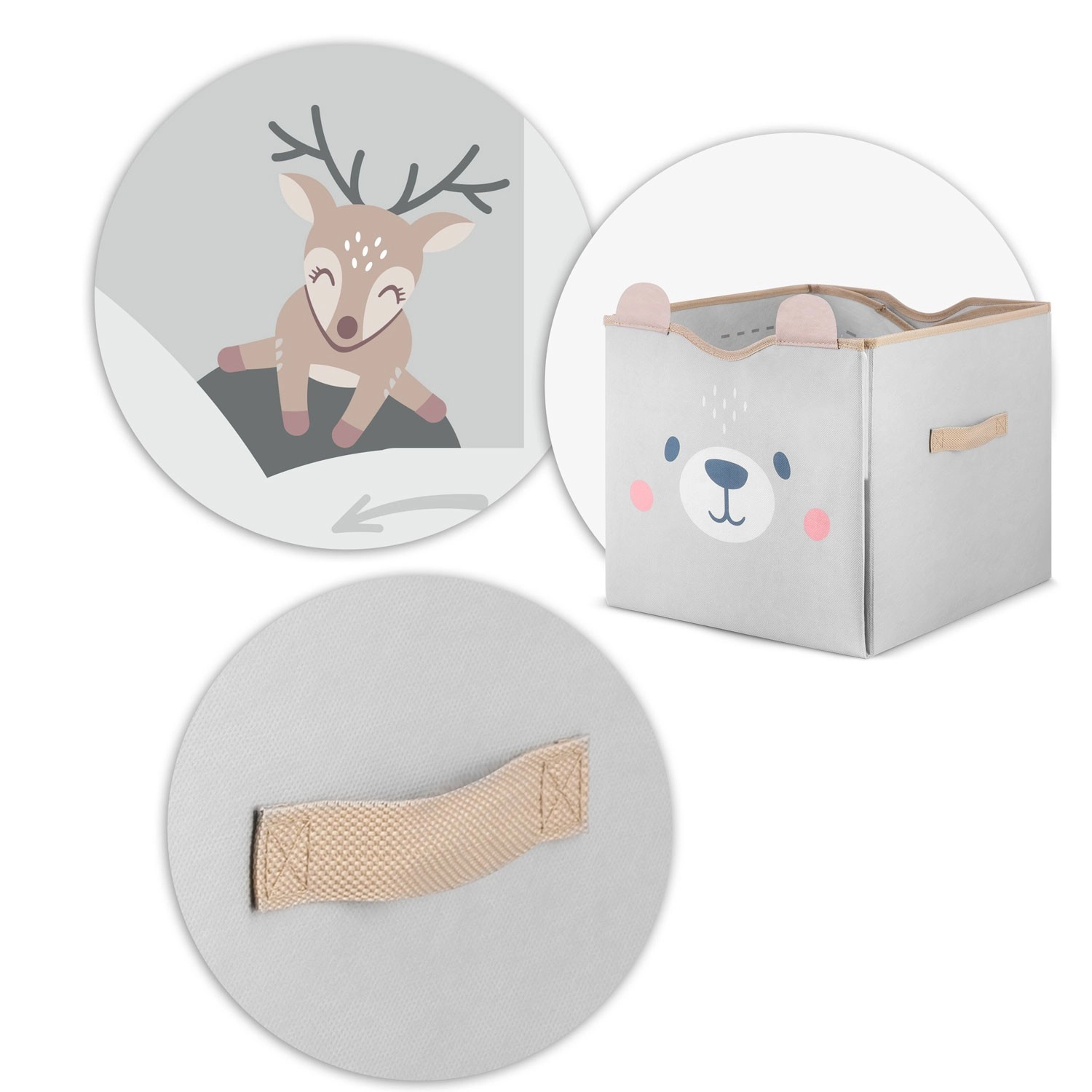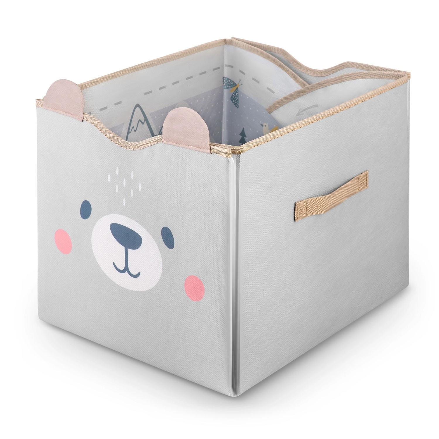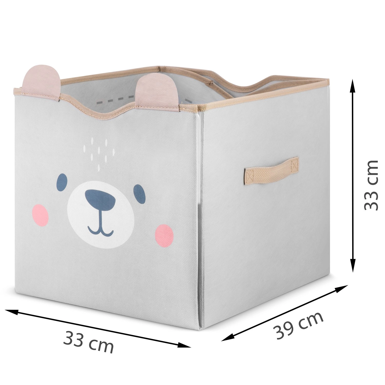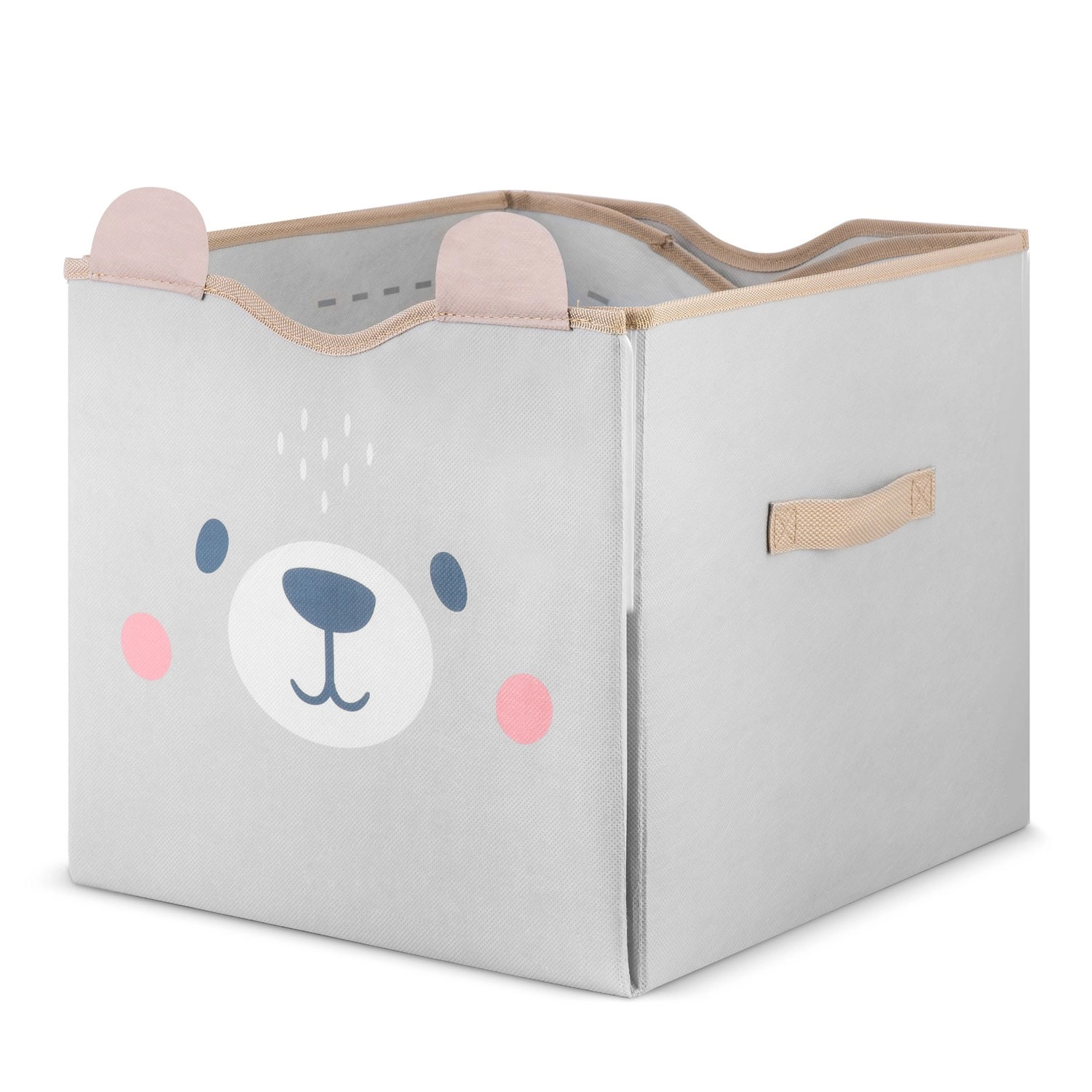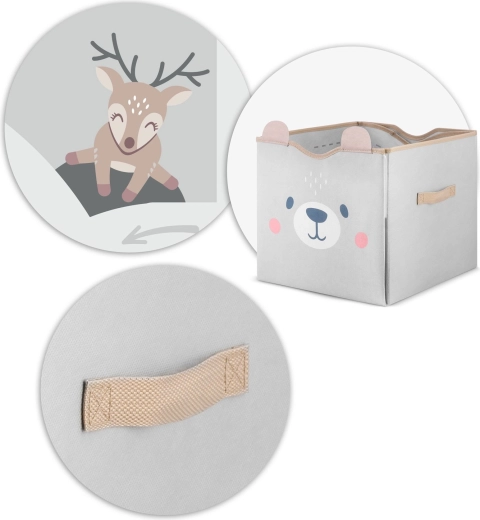 Durchdachte Details begeistern Eltern und Kinder gleichermaßen: starke Klettverschlüsse halten die Korbform, seitliche Griffe erleichtern das Tragen und die leicht abwischbare Oberfläche sorgt für schnelle Pflege. Dank der kompatiblen Maße passt er hervorragend in gängige Fächer und Regale.