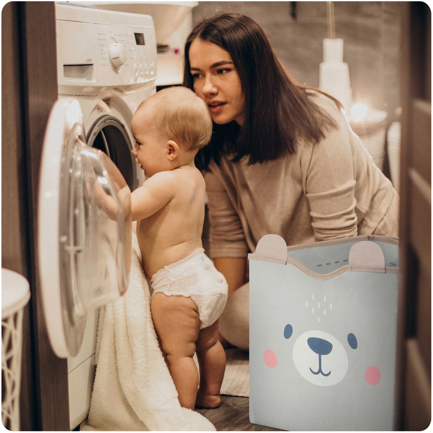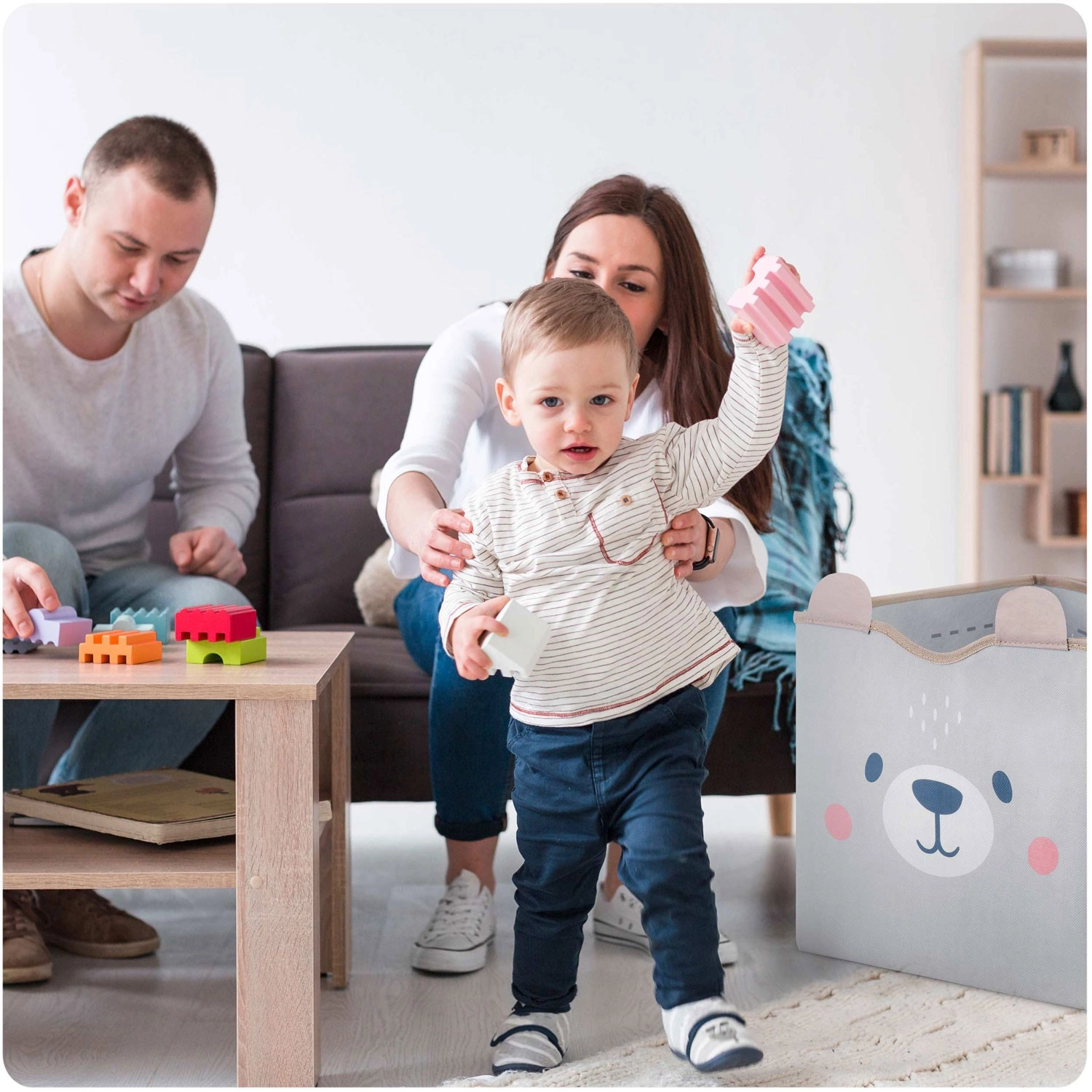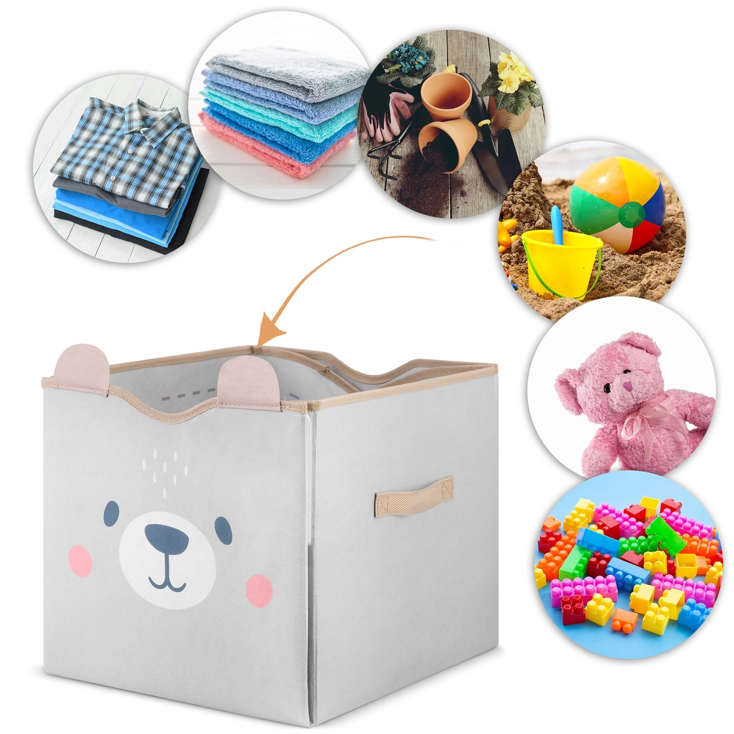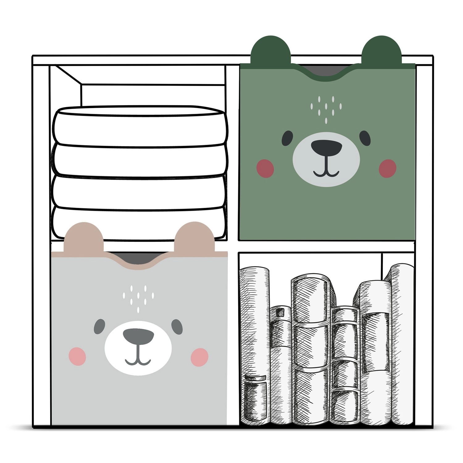 Durchdachte Details begeistern Eltern und Kinder gleichermaßen: starke Klettverschlüsse halten die Korbform, seitliche Griffe erleichtern das Tragen und die leicht abwischbare Oberfläche sorgt für schnelle Pflege. Dank der kompatiblen Maße passt er hervorragend in gängige Fächer und Regale.