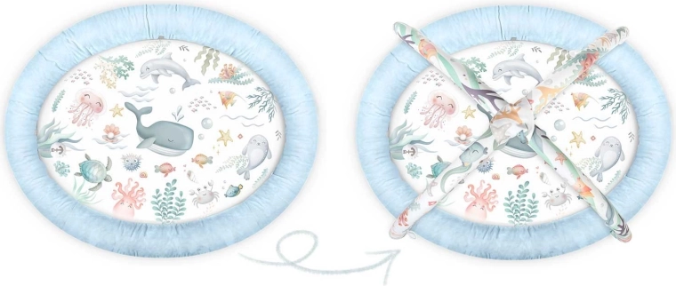 Die Decke hat ein leicht abwischbares und angenehm weiches Material mit gut isolierendem Boden. Dank des schnellen Zusammenklappens lässt sie sich einfach transportieren oder verstauen. Abnehmbare Bögen verlängern die Nutzungsdauer – aus dem Kokon für Neugeborene wird eine geräumige, weiche Unterlage für Kleinkinder.