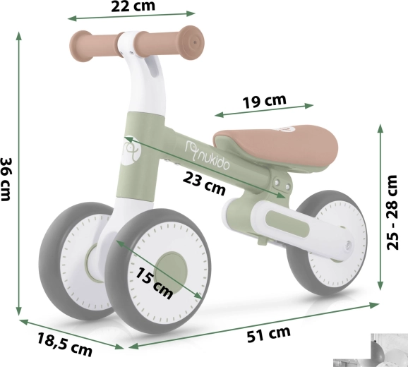 Warum Nukido? Die Marke konzentriert sich auf Funktionalität und Ästhetik für die Kleinsten. Das Laufrad wurde auf die Bedürfnisse von Kindern abgestimmt – damit sie leicht aufsteigen, sicher abstoßen und mit einem Lächeln die Welt entdecken.