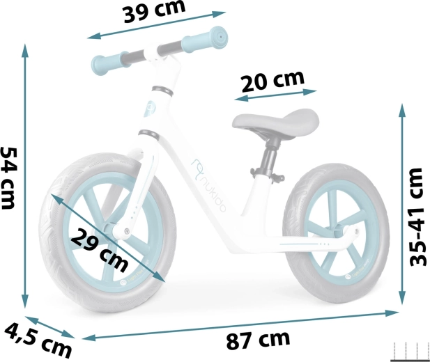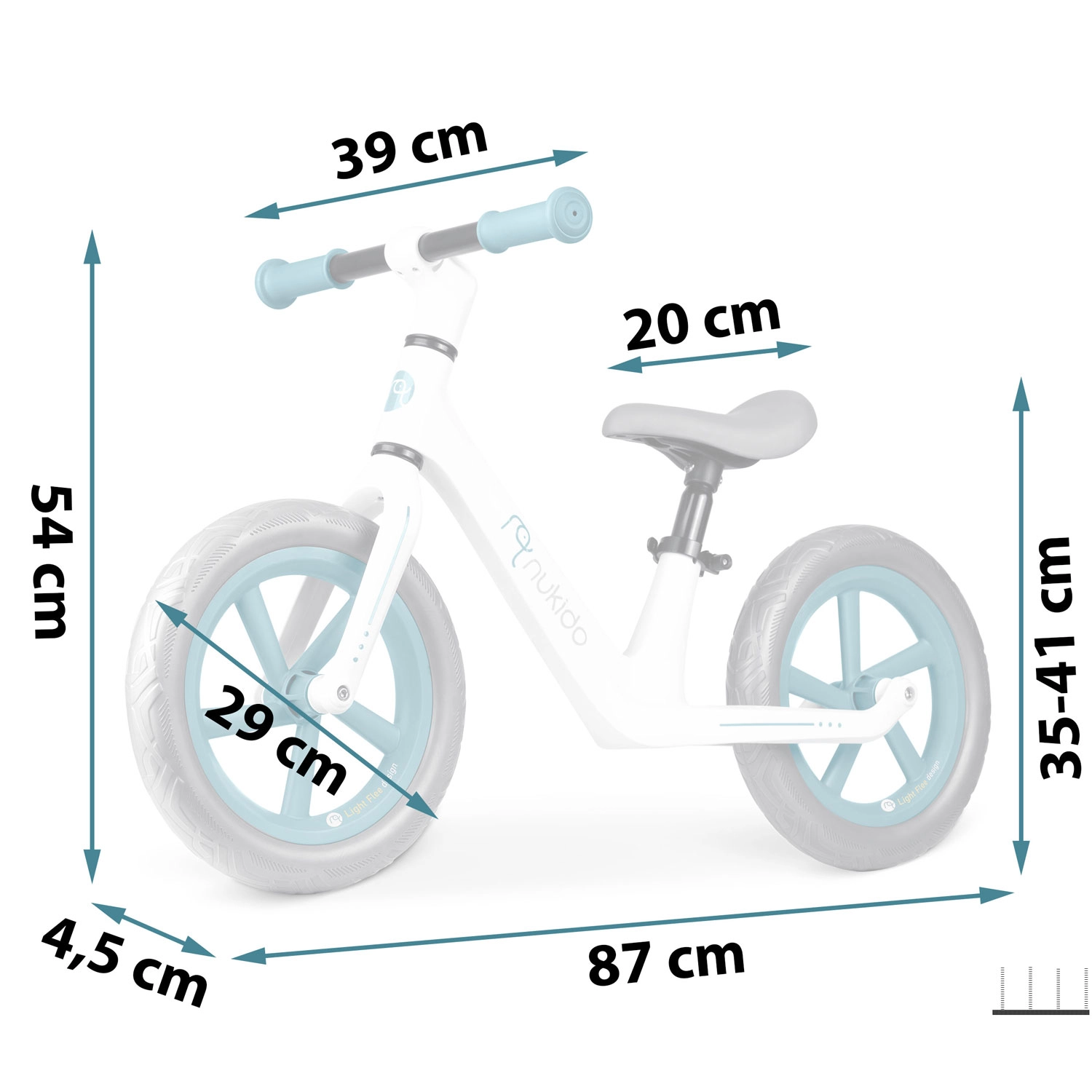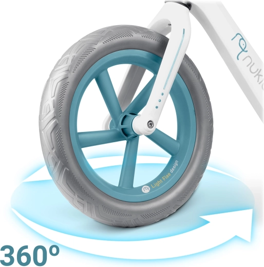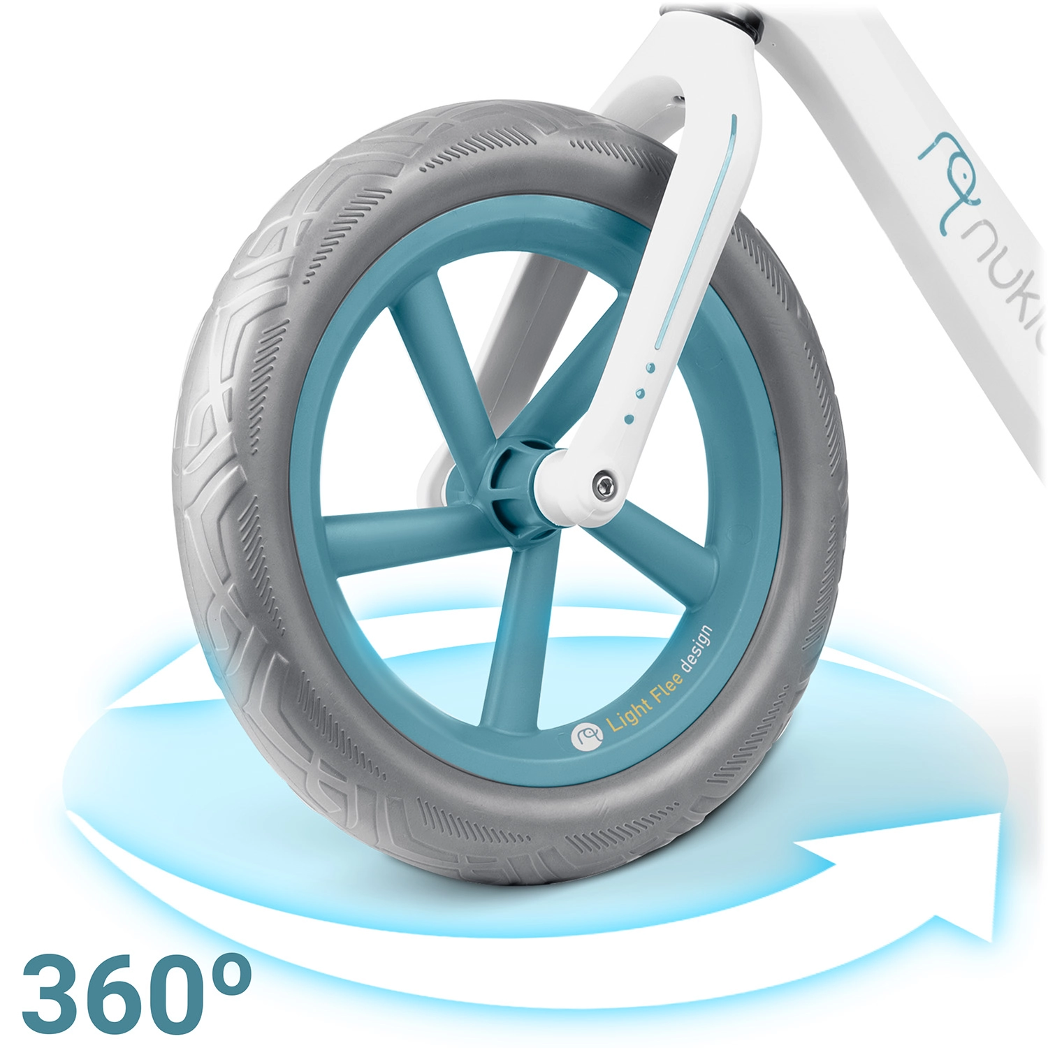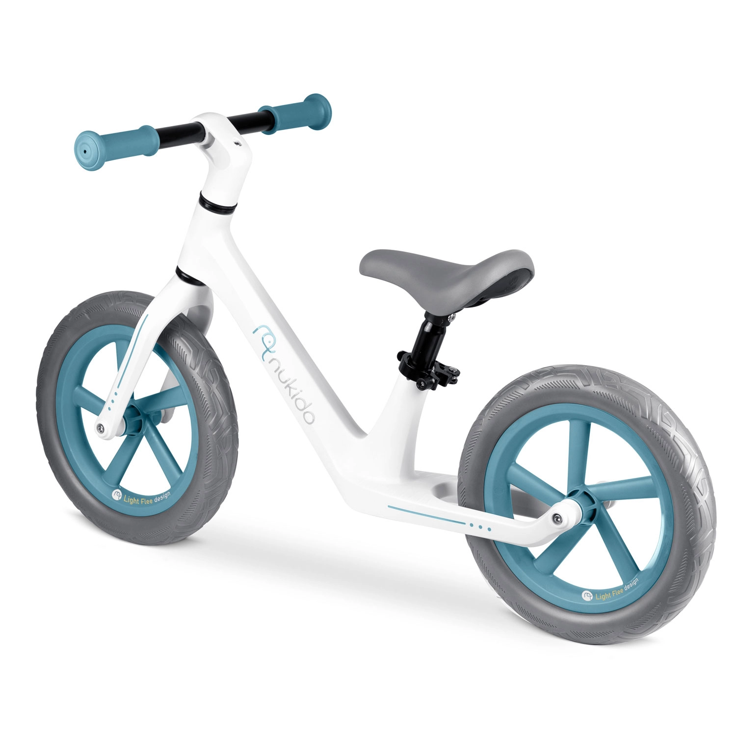 Das Laufrad Nukido Light Flee ist das ideale erste Rad für die Kleinsten. Dank der leichten und stabilen Konstruktion lernen Kinder schnell, Balance zu halten, besser zu lenken und die Fahrtrichtung sicherer zu kontrollieren. Der weich gepolsterte Sattel lässt sich einfach an die Körpergröße des Kindes anpassen, sodass das Laufrad mitwächst.