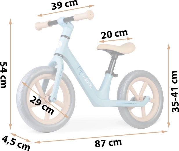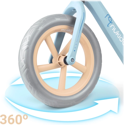 Das Laufrad Nukido Light Flee hilft Kindern, Balance, Konzentration und Selbstvertrauen natürlich zu entwickeln. Das geringe Gewicht von 2,8 kg erleichtert auch den kleinsten Fahrern die Handhabung, während die Nylonrahmen-Konstruktion robust und zugleich leicht ist. Die schlauchlosen 12"-EVA-Räder sind wartungsfrei und pannensicher – ideal für den Alltag.