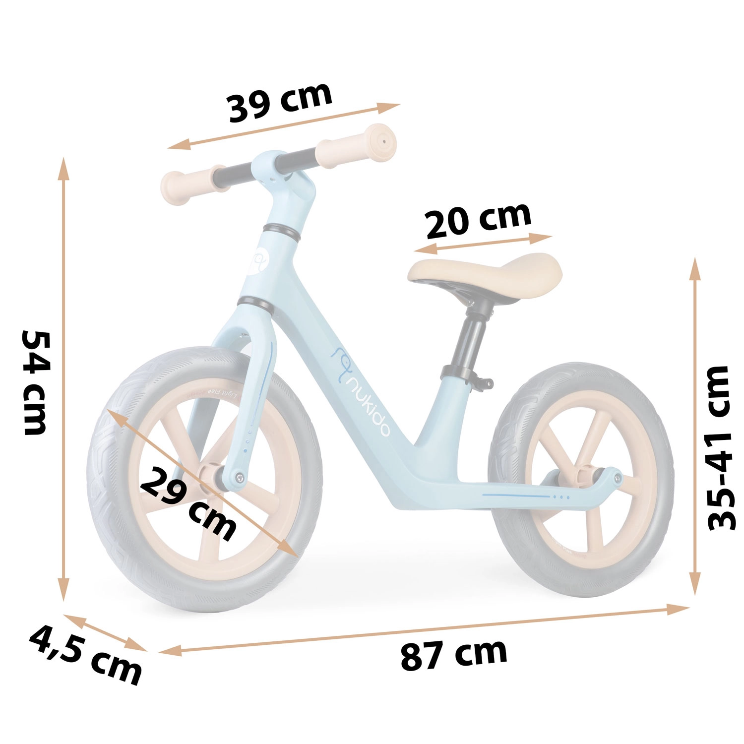 Dank der höhenverstellbaren Sattelstütze von 35–41 cm wächst das Laufrad mit dem Kind mit und bietet in jeder Entwicklungsphase Komfort. Der ergonomische Sattel aus Schaumstoff und die rutschfesten Griffe mit Stoppern erhöhen Komfort und Sicherheit bei jeder Fahrt.