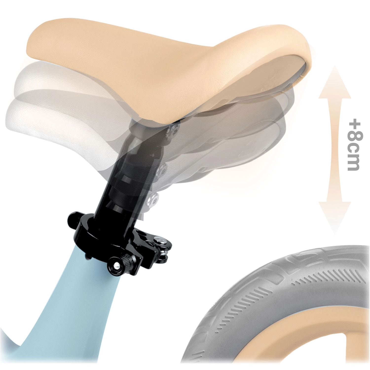 Die höhenverstellbare Sattelstütze mit 8 cm Verstellbereich sorgt in jeder Wachstumsphase für die ideale Position und hohen Komfort.