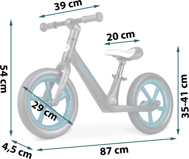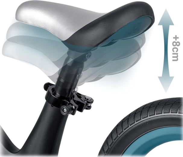 Der weiche Schaumsattel mit einer Höhenverstellung von ca. 35–41 cm sorgt für die richtige Sitzposition und eine längere Nutzungsdauer, während das Kind wächst.