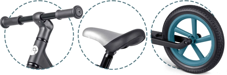 Dank des großen Sattelverstellbereichs passt sich das Laufrad dem wachsenden Kind an und bietet in verschiedenen Entwicklungsphasen eine bequeme Sitzposition. Gummigriffe mit Endanschlägen geben zusätzliche Sicherheit beim Lenken und schützen die Hände.