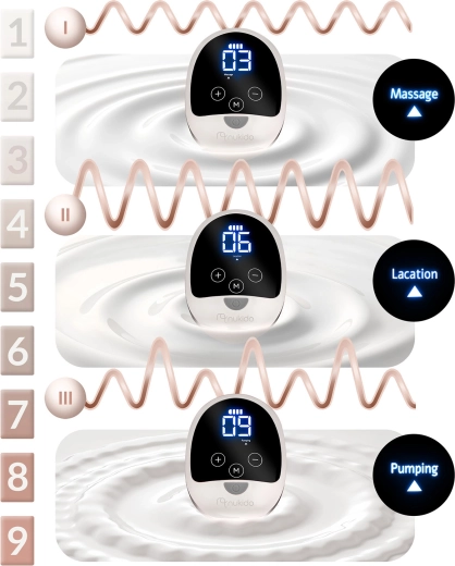 Die Technologie imitiert das Saugen des Babys in drei Schritten – Stimulation, Saugen und tiefes Abpumpen – jede Phase hat 9 Einstellungen für schonendes und effektives Abpumpen.
