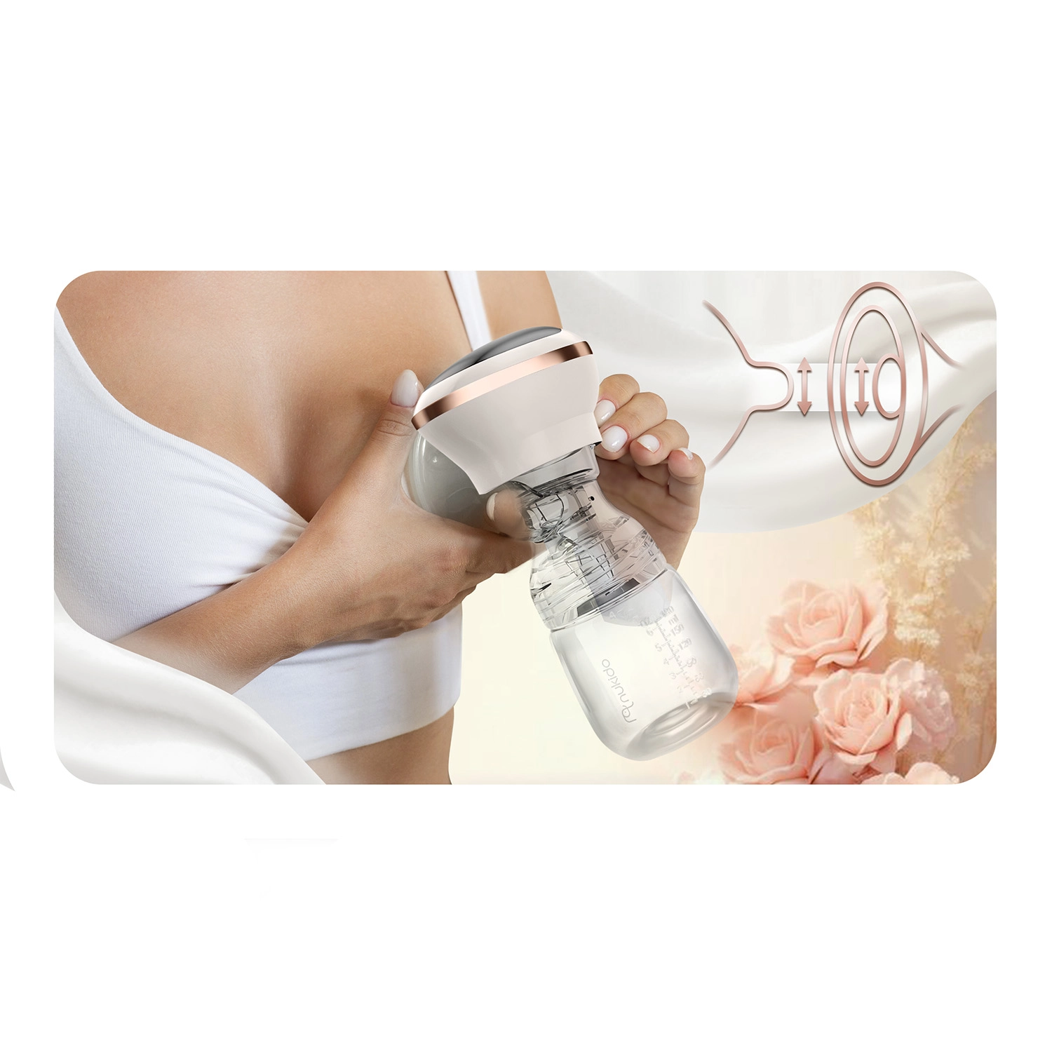 Die weiche Massageeinlage aus sanftem Silikon erhöht den Komfort und fördert den Milchfluss. Die 180‑ml-Flasche mit dynamischem Sauger beeinträchtigt das Stillen nicht.