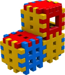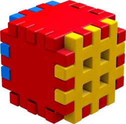 Gezahnte Kanten und Gitterflächen ermöglichen eine feste Verbindung der Teile und den Bau einfacher 3D-Formen, Würfel und Türme.