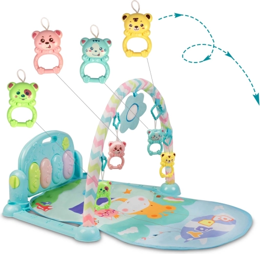 Die interaktive Spieldecke mit Klavier Ricokids 3-in-1 ist die ideale Wahl für die ersten Monate und weitere Entwicklungsstufen. Die bunte Unterlage mit Bogen und hängenden Spielzeugen lädt zum Anheben der Händchen, Greifen und Strampeln gegen das Klavier mit 12 Melodien ein. Ein Spiegel unterstützt die Selbstwahrnehmung, Rasseln und knisternde Elemente fördern Gehör und Tastsinn. Dank des abnehmbaren Klaviers lässt sich die Decke leicht in einen Musiktisch für sitzende Kinder verwandeln.