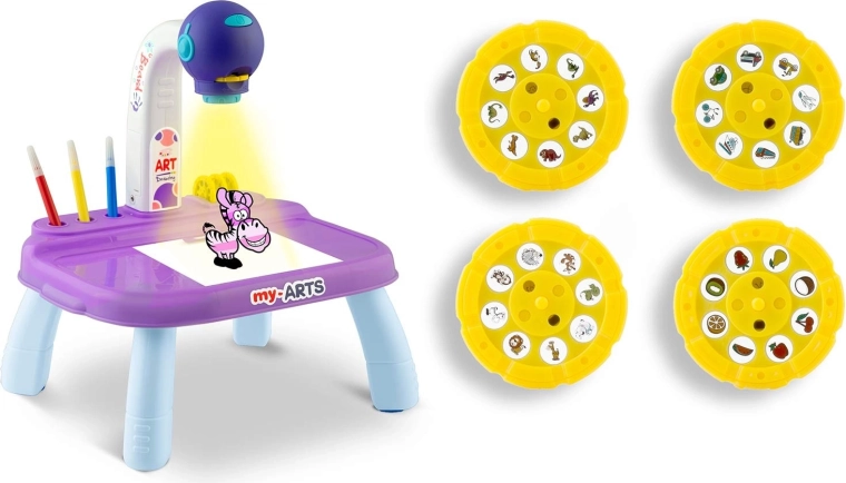 Projektor mit Tisch, 4 Motivscheiben, 6 farbige Filzstifte