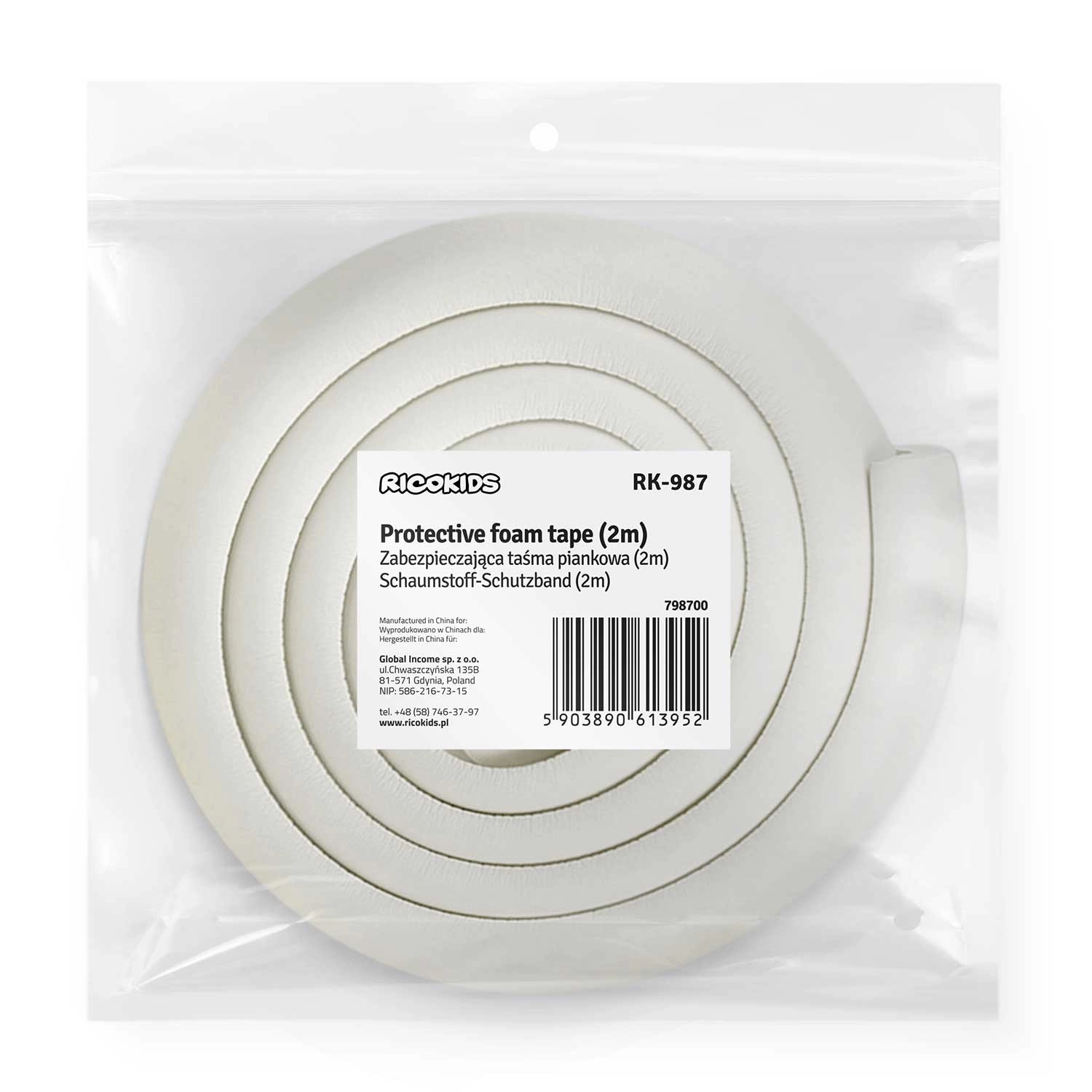 Der RICOKIDS-Schaumkantenschutz bietet zuverlässigen Schutz für scharfe Kanten von Tischen, Schränken oder Regalen. Dank des hochwertigen Schaums ist er angenehm weich und zugleich robust; durch den UV-Schutz bleibt die Farbe lange erhalten. Die Montage ist einfach – Oberfläche entfetten, Folie entfernen und fest andrücken.