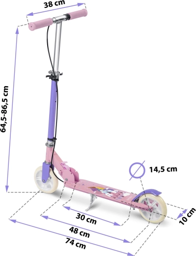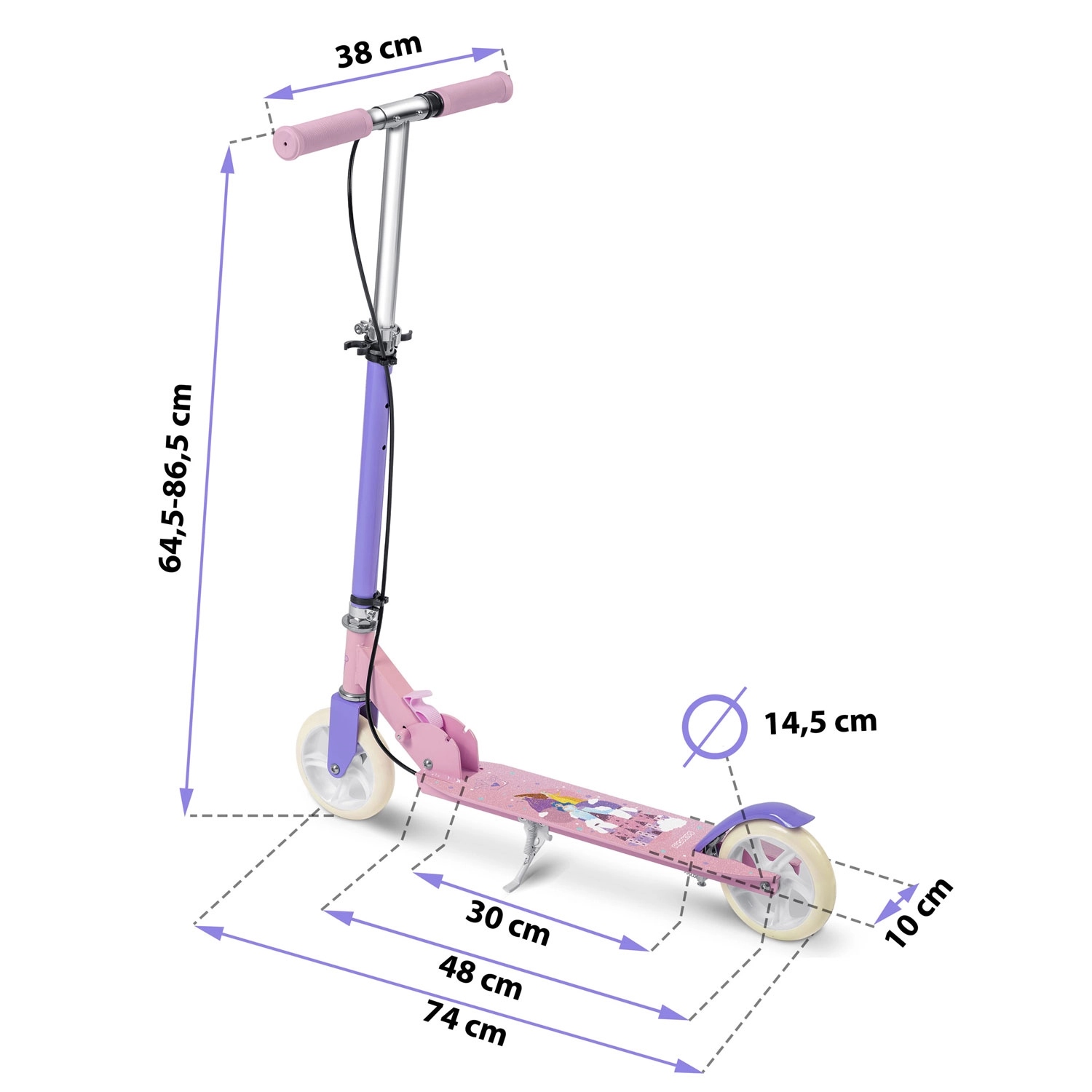 Der RICOKIDS Kodi Prinzessinnen-Roller ist die ideale Wahl für erste Fahrversuche und täglichen Spielspaß. Das niedrige und breite Trittbrett erleichtert das Erlernen des Gleichgewichts, die leichte Konstruktion sorgt für einfaches Handling und der Klappmechanismus ermöglicht mühelosen Transport und unkomplizierte Aufbewahrung. Das stylische rosa‑violette Design mit Prinzessinnenmotiven begeistert kleine Fahrerinnen, während Eltern die Betonung auf Sicherheit und Komfort schätzen.