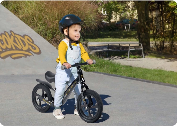 Die Konstruktion aus Magnesiumlegierung ist stabil, leicht und einfach zu tragen. Kinder erhalten mehr Kontrolle über die Lenkung, und Eltern schätzen die unkomplizierte Handhabung im Alltag.