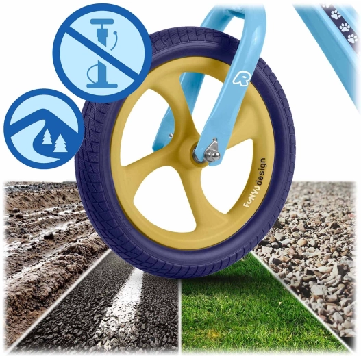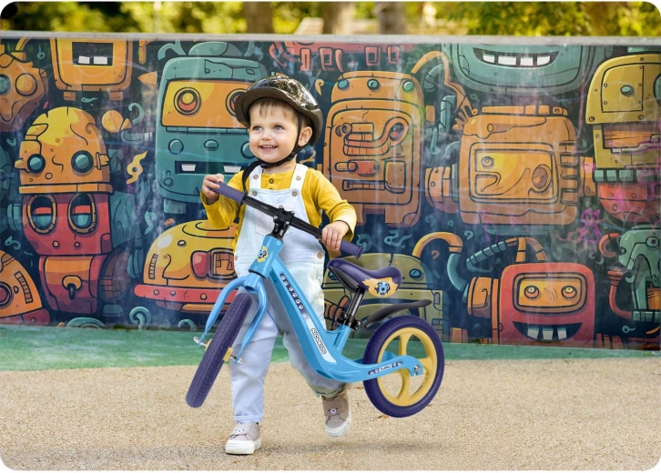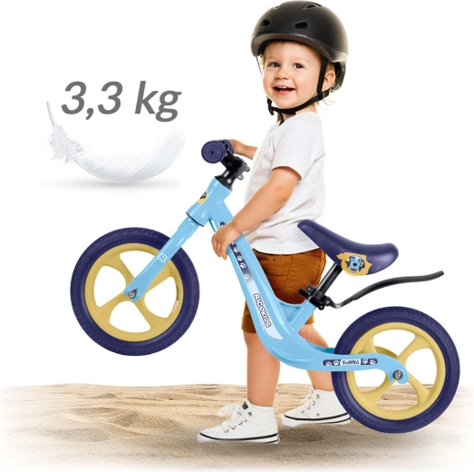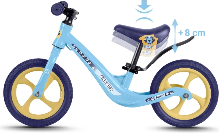 Das Ricokids Funnu ist das ideale erste Laufrad für kleine Fahrer. Dank der ultraleichten Konstruktion kommen Kinder damit leicht selbst zurecht und Eltern tragen es mühelos in den Park oder die Treppe hinauf. Der Magnesiumrahmen gewährleistet hohe Stabilität bei geringem Gewicht und die Räder aus EVA-Schaum sind wartungsfrei, leise und pannensicher – perfekt für Rasen, Asphalt und Kies.