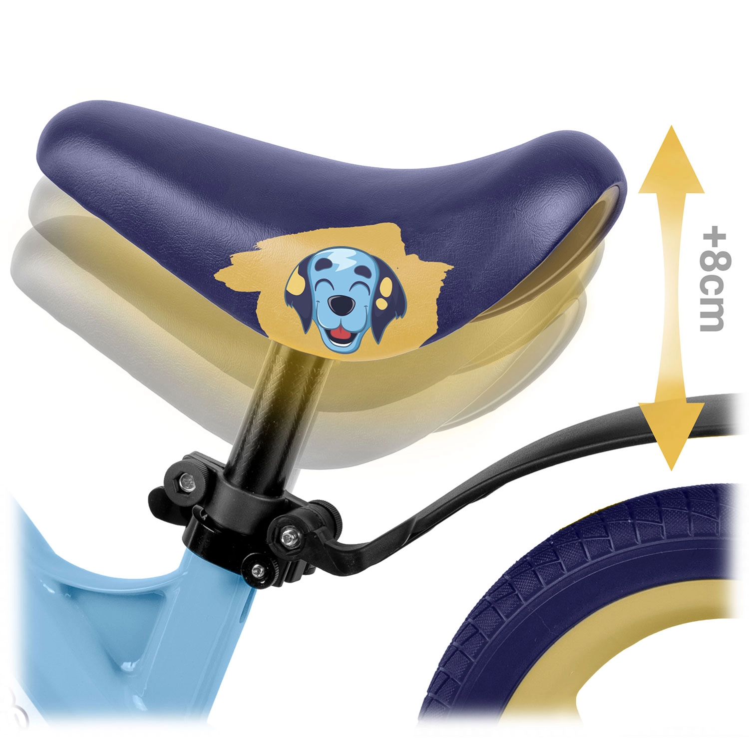 Der weiche, ergonomische Sattel mit einem Bereich von ca. 35–42 cm sorgt für die richtige Einstellung für Komfort und Stabilität in jedem Alter.