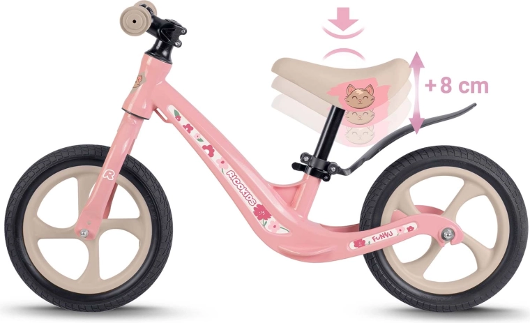 RICOKIDS FUNNU ist ein Laufrad für kleine Entdecker, die ohne Grenzen fahren möchten. Der ultraleichte Rahmen aus Magnesiumlegierung erleichtert die Handhabung für Kinder und Eltern, während die wartungsfreien EVA-Räder eine ruhige, pannenfreie Fahrt auf Gras, Asphalt und Schotter gewährleisten. Dank der stufenlos einstellbaren Sattelhöhe wächst das Laufrad mit Ihrem Kind mit.