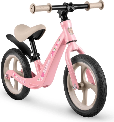 Der Rahmen aus Magnesiumlegierung ist robust, zugleich sehr leicht und perfekt ausbalanciert. Kinder manövrieren das Laufrad mühelos, und Eltern tragen es ohne Anstrengung überallhin.
