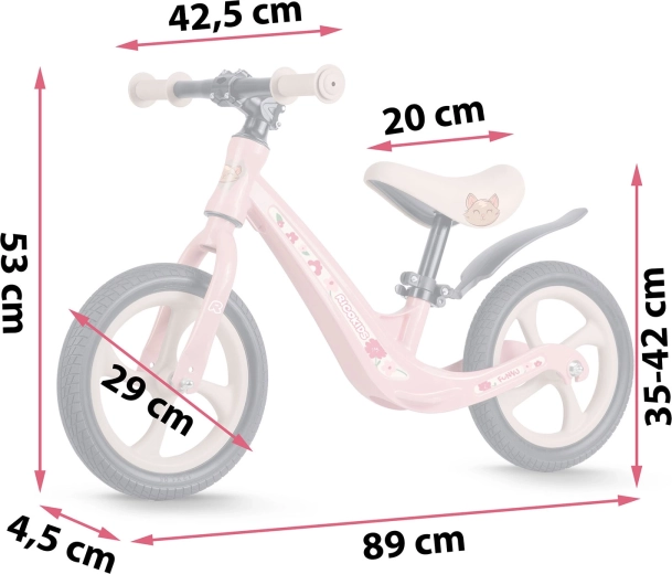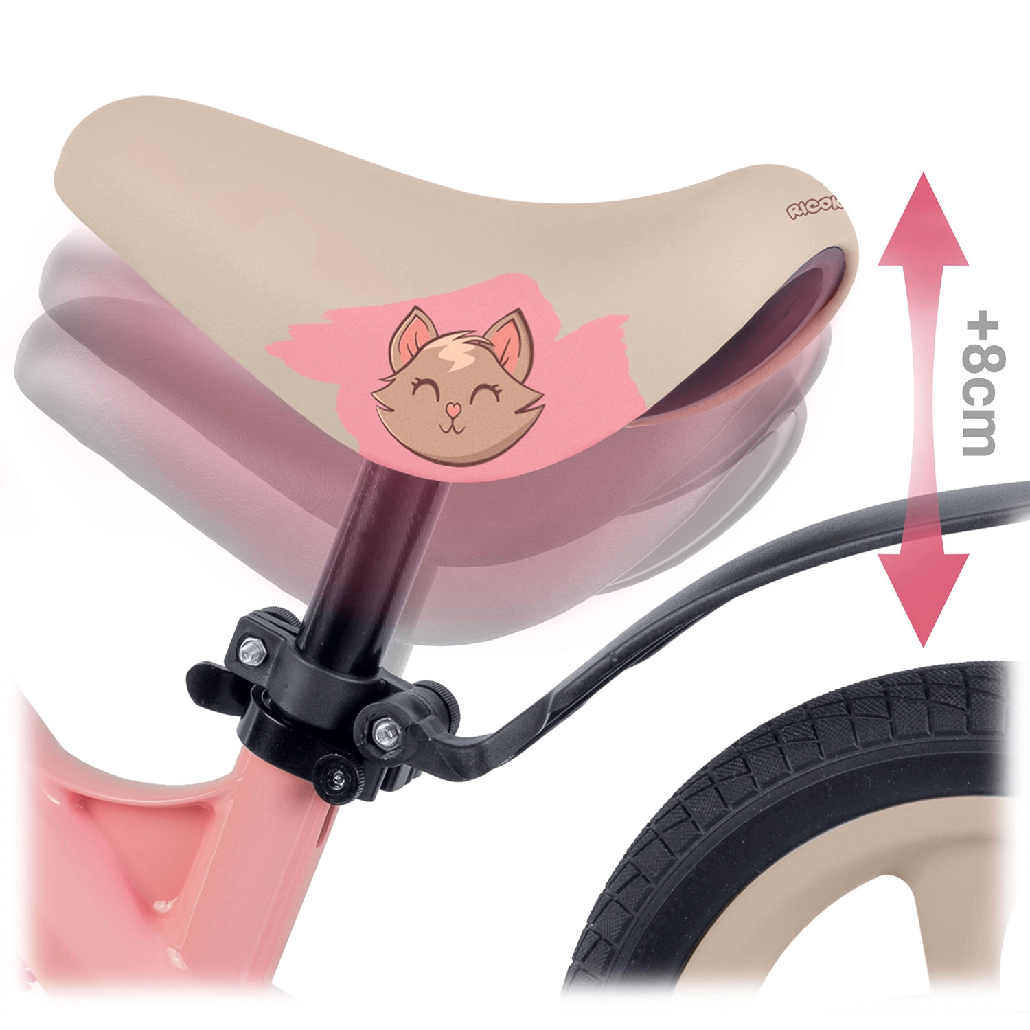 Der Höhenbereich von 35–42 cm ermöglicht die richtige Sitzposition in jeder Wachstumsphase. Der ergonomische Schaumsattel sorgt für Komfort bei kurzen wie längeren Fahrten.