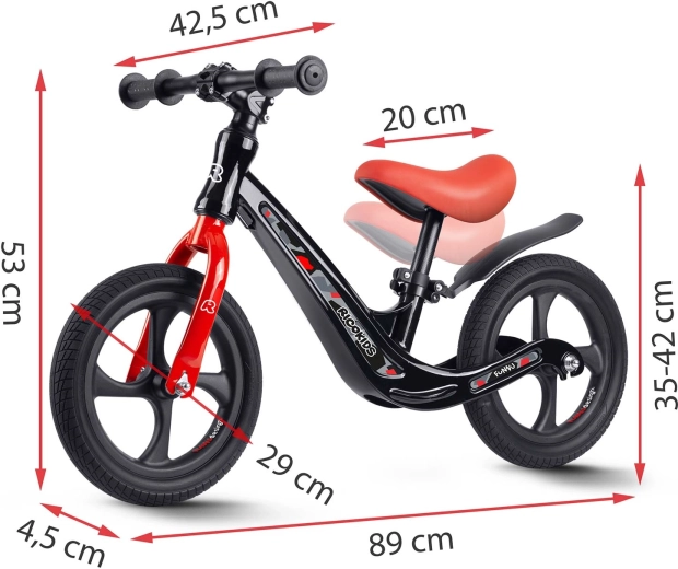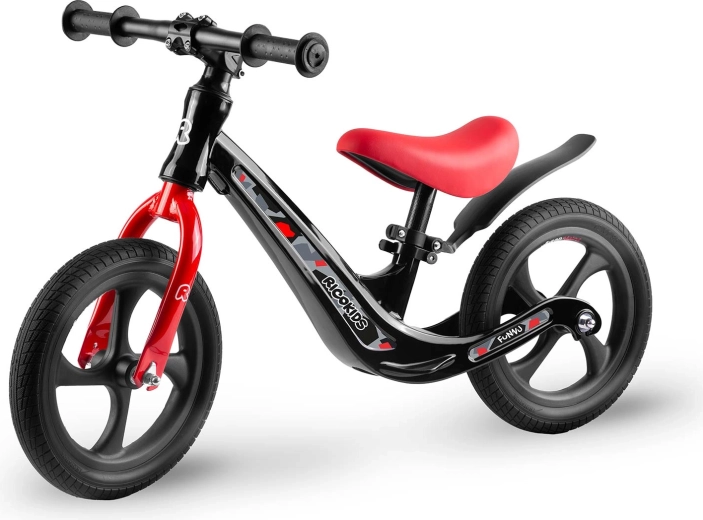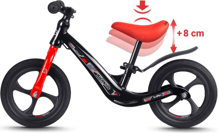 Das Ricokids Funnu ist ein zuverlässiges Kinderlaufrad, entwickelt für den fließenden Umstieg auf ein klassisches Fahrrad. Die ultraleichte Magnesiumkonstruktion erleichtert das Tragen und verbessert die Kontrolle, während die wartungsfreien EVA-Räder eine leise und stabile Fahrt auf Rasen, Asphalt und Schotter gewährleisten. Die verstellbare Sattelhöhe von 35–42 cm wächst mit dem Kind mit und bietet in jeder Entwicklungsphase Komfort.