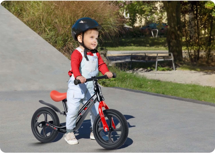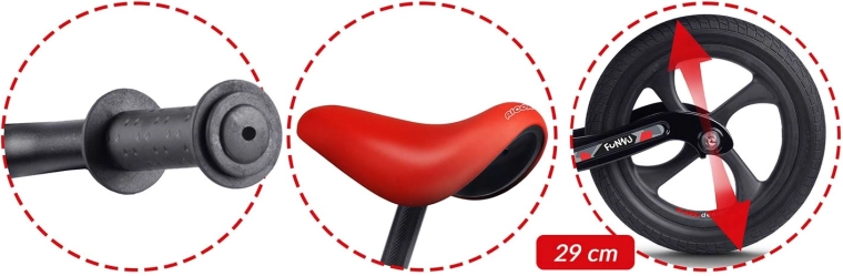 Für Sicherheit und Komfort sorgen rutschfeste Griffe mit Stoppern für einen festen Halt, ein weicher ergonomischer Sattel für längere Ausflüge sowie eine durchdachte Geometrie für einfaches Auf- und Absteigen. Das Fahren mit dem Laufrad fördert Koordinationsfähigkeit, Balance und Konzentration und stärkt so das Selbstvertrauen der kleinen Fahrerinnen und Fahrer.