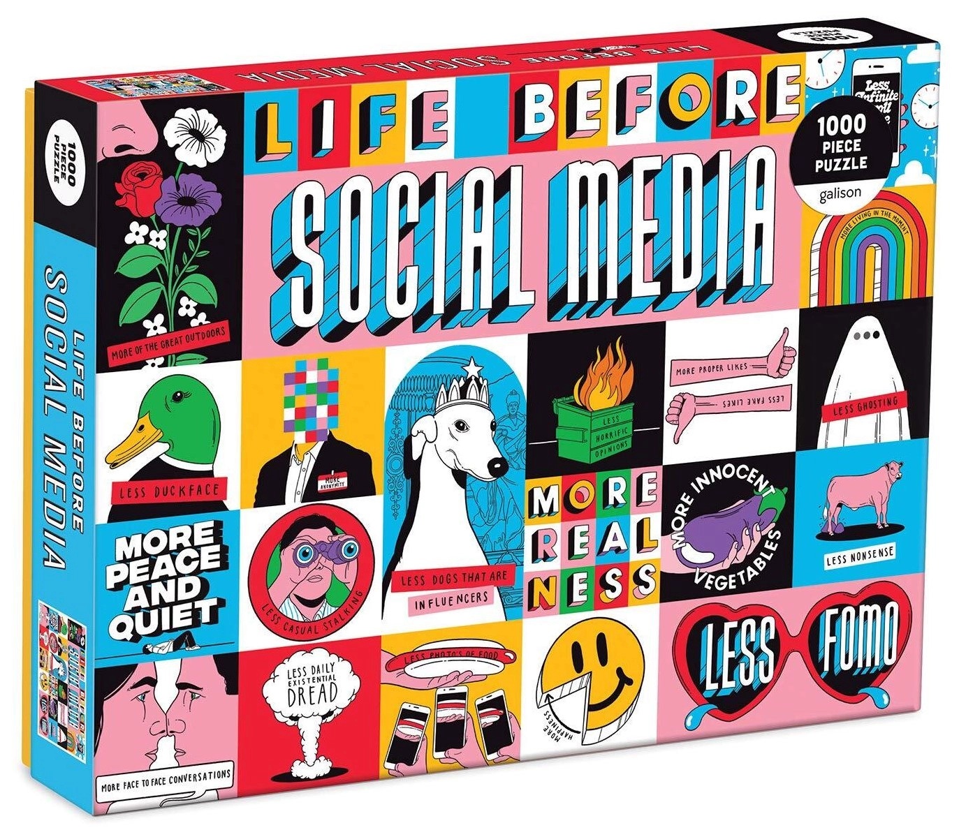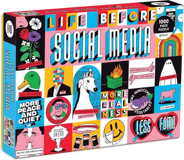 Entdecken Sie den Spaß mit einem hochwertigen Puzzle der Marke Galison. Die Illustration Leben vor sozialen Medien des Künstlers Toby Triumph sorgt für Unterhaltung und stellt Ihre Geduld auf die Probe. Die Packung enthält 1000 Teile und ergibt nach dem Zusammensetzen ein Bild mit den Maßen 69 × 51 cm – ideal zum Einrahmen oder Ausstellen.
