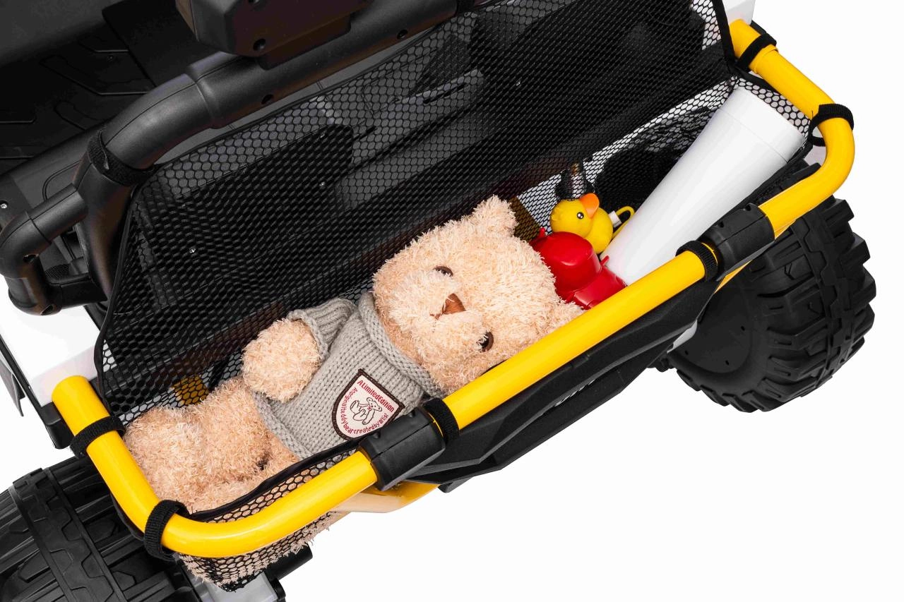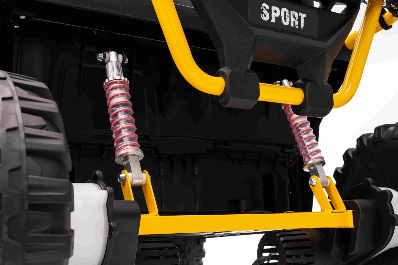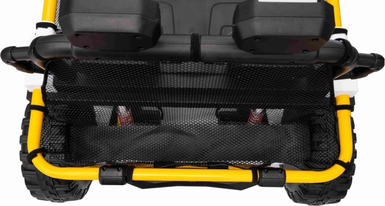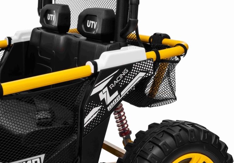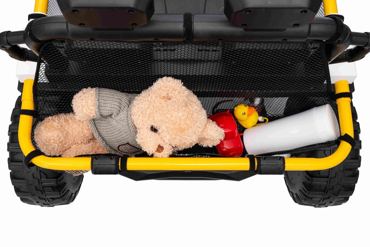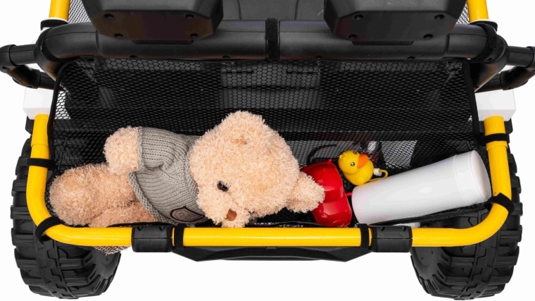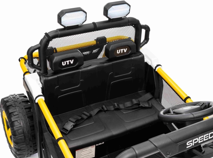 Im praktischen hinteren Stauraum verstauen Sie Spielzeug und Kleinigkeiten für unterwegs. Einstellbare hintere Stoßdämpfer und vordere Federung glätten Unebenheiten und erhöhen den Komfort der Insassen. UTV SPEED ist die ideale Wahl für Geschwister – zweisitzige Sitze und eine Tragfähigkeit von 40 kg ermöglichen gemeinsame Abenteuer.