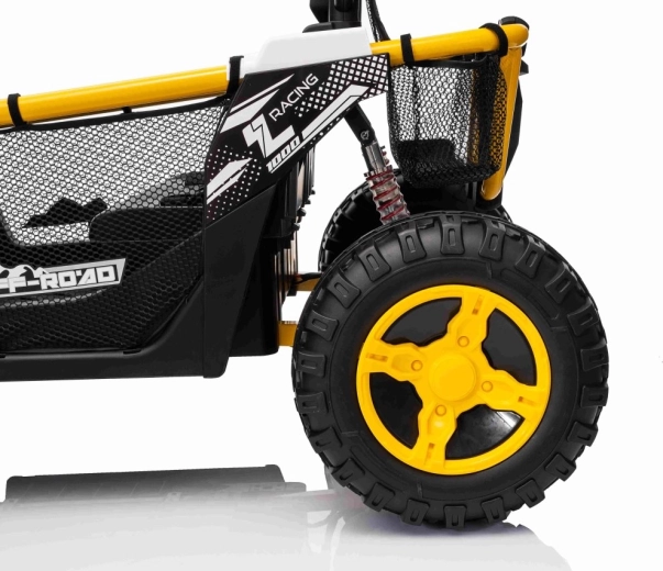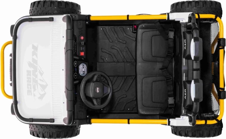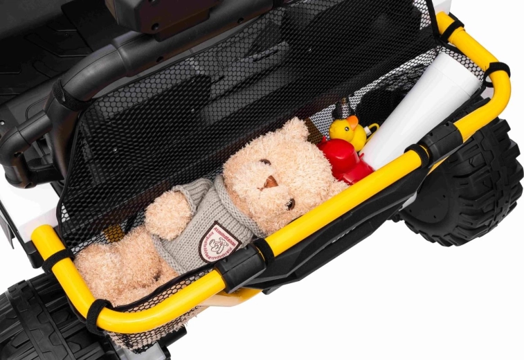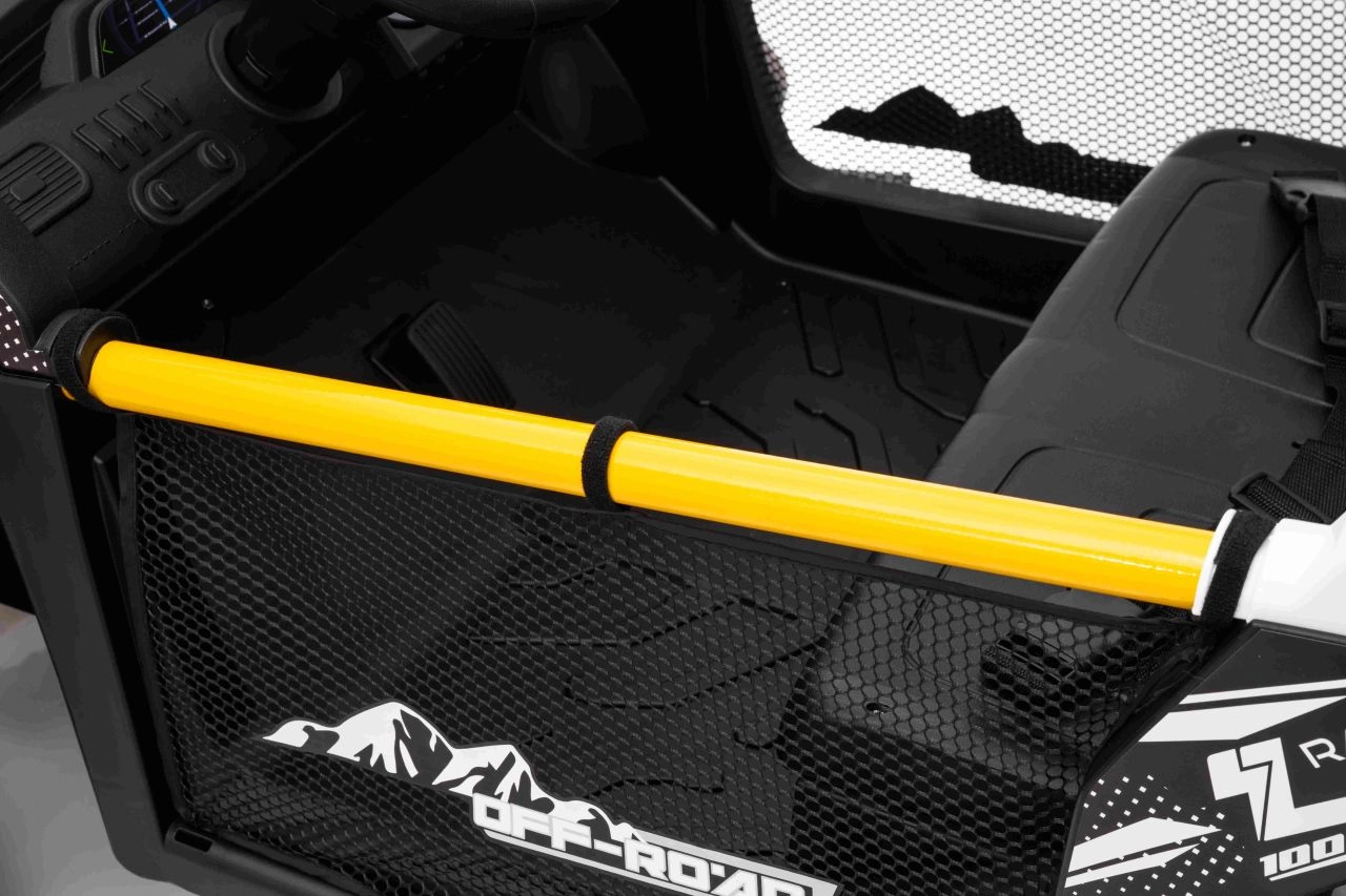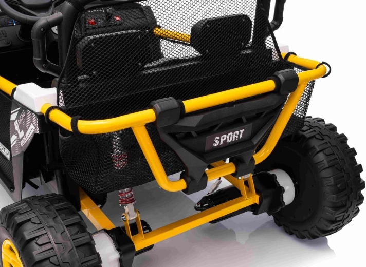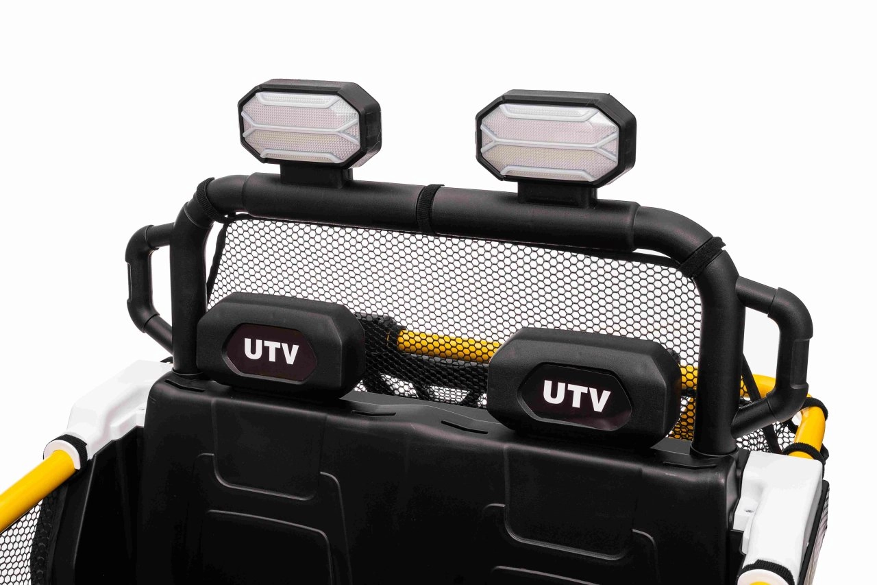 Im praktischen hinteren Stauraum verstauen Sie Spielzeug und Kleinigkeiten für unterwegs. Einstellbare hintere Stoßdämpfer und vordere Federung glätten Unebenheiten und erhöhen den Komfort der Insassen. UTV SPEED ist die ideale Wahl für Geschwister – zweisitzige Sitze und eine Tragfähigkeit von 40 kg ermöglichen gemeinsame Abenteuer.