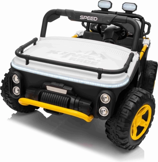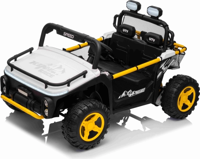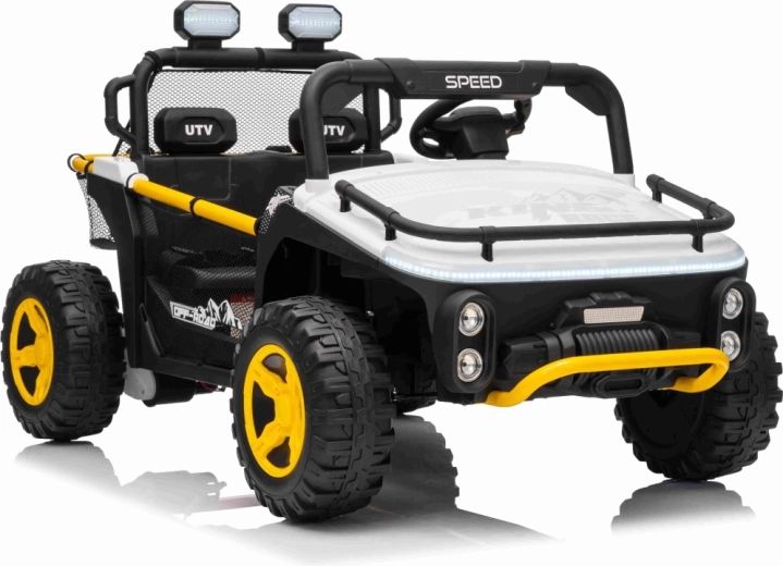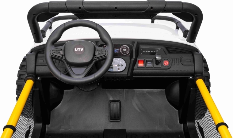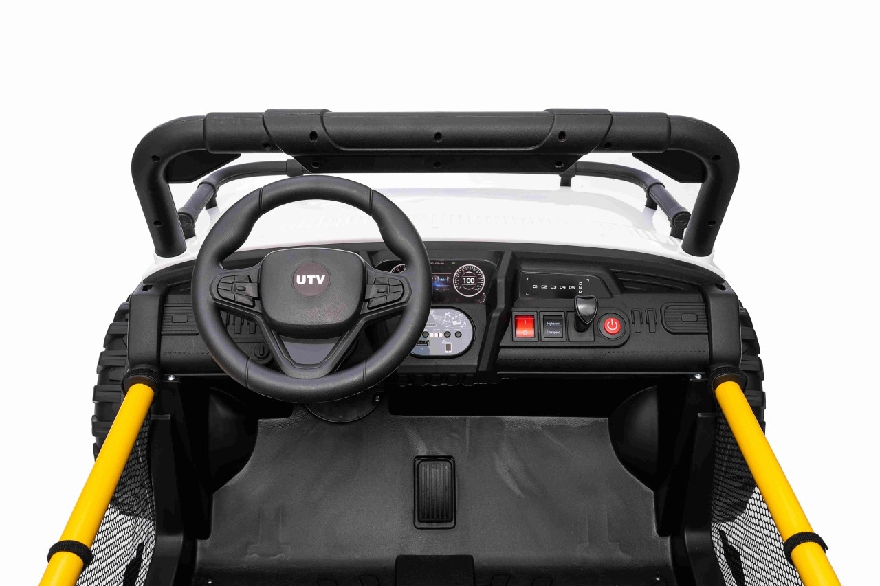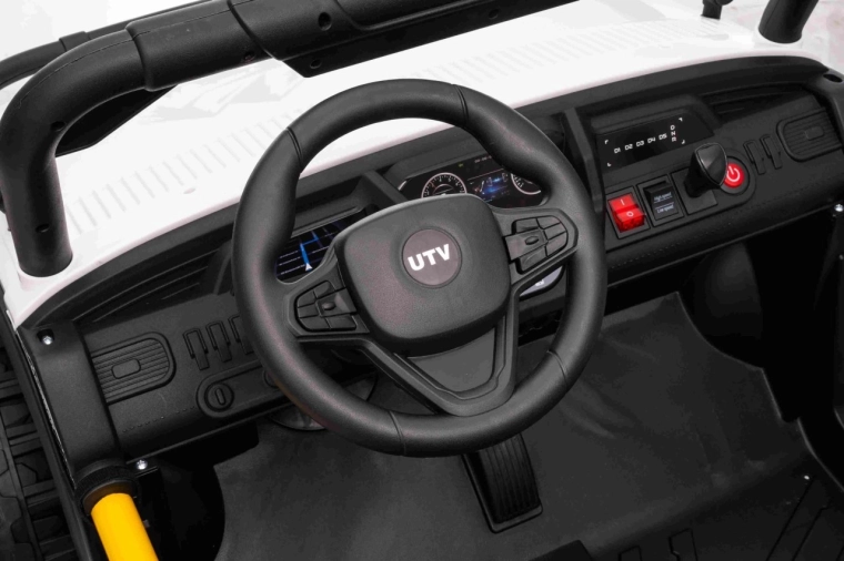 Entdecken Sie das robuste Kinderauto UTV SPEED, das Gehwege und leichtes Gelände meistert. Dank der zwei starken Motoren 2x80 W und dem 24 V 9 Ah Akku erhalten kleine Fahrer einen sanften Durchzug, sanftes Anfahren und die Möglichkeit, vorwärts/rückwärts mit 2 Geschwindigkeiten zu fahren. Große EVA-Räder 30 x 12 cm sorgen für leises Fahren und hervorragende Traktion.
