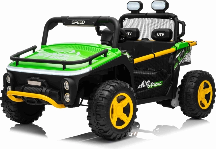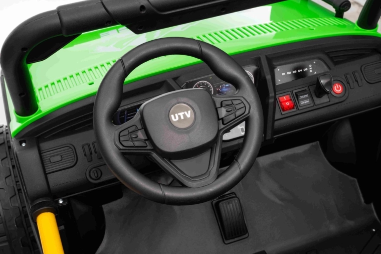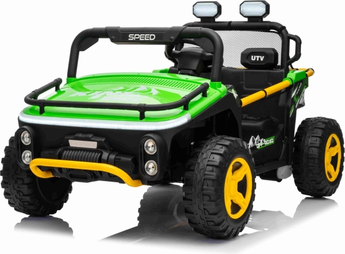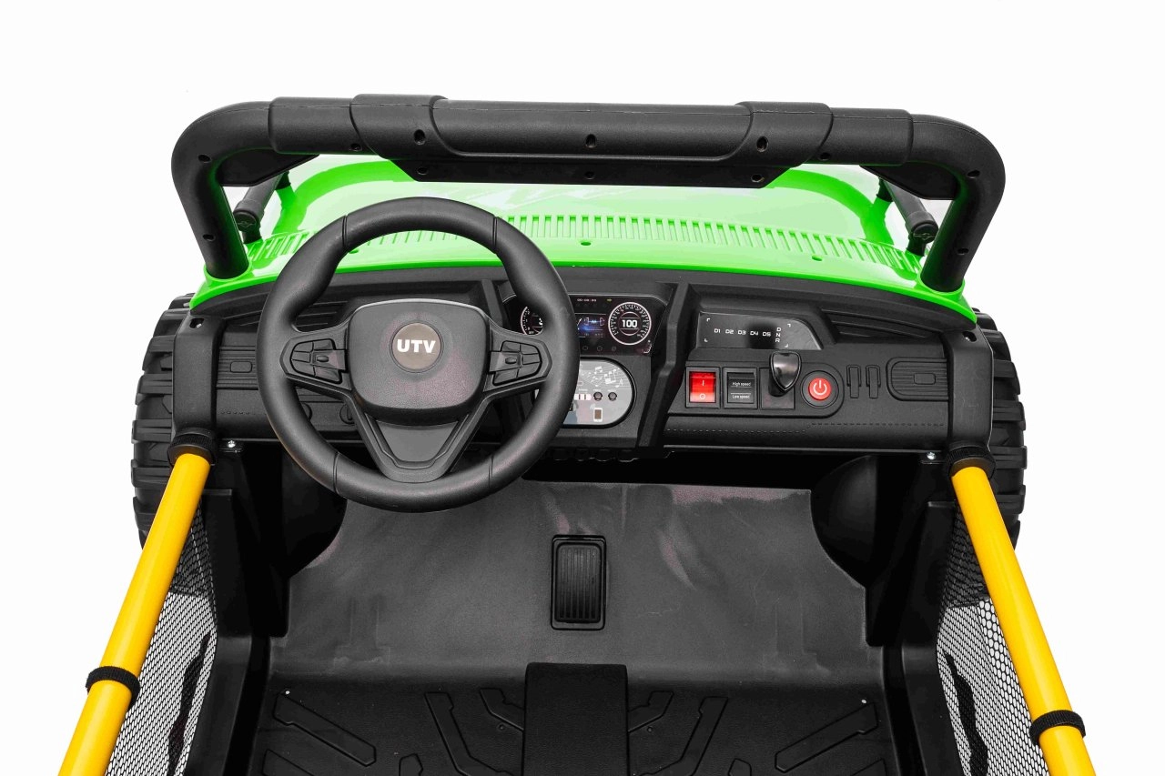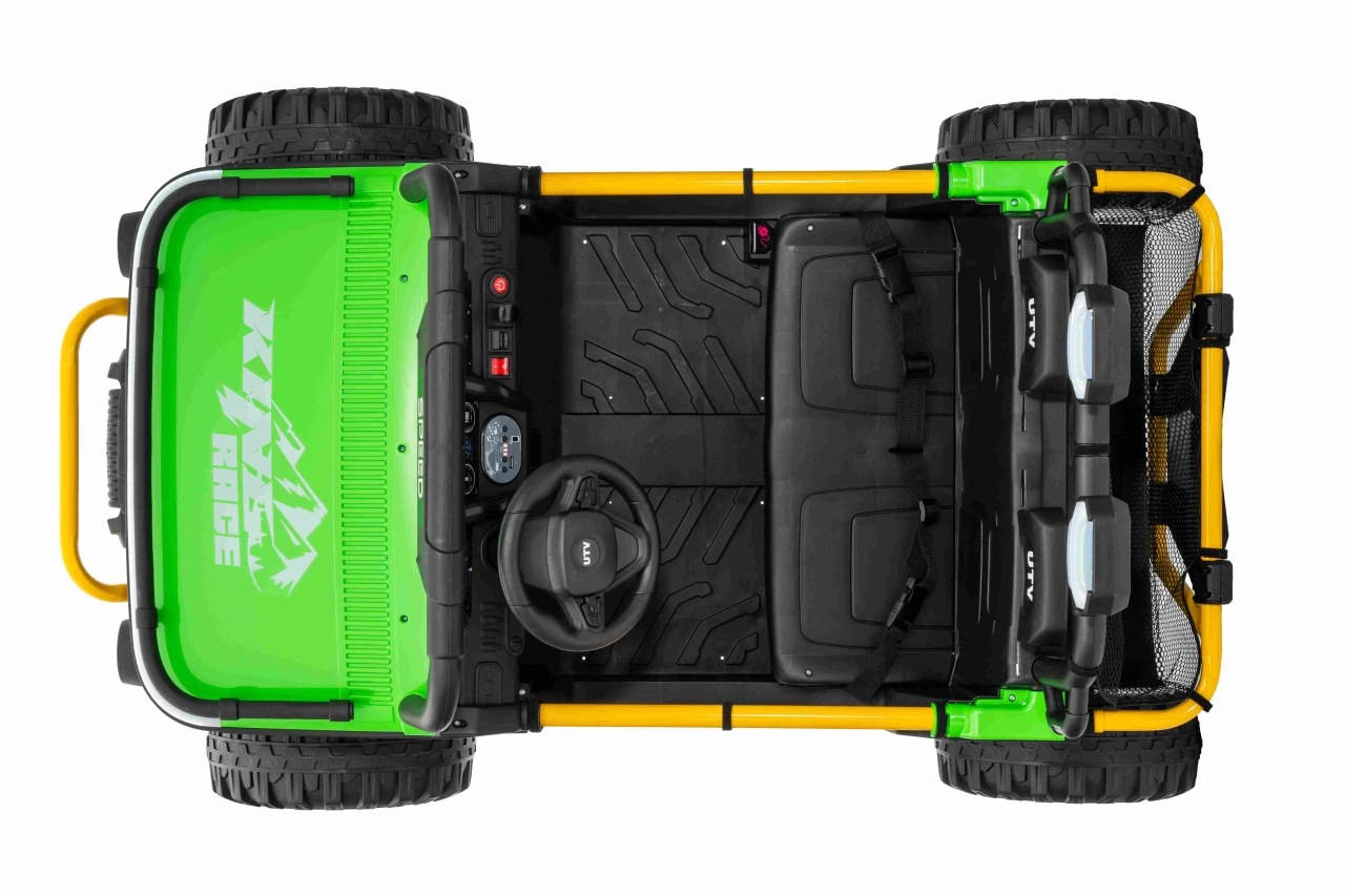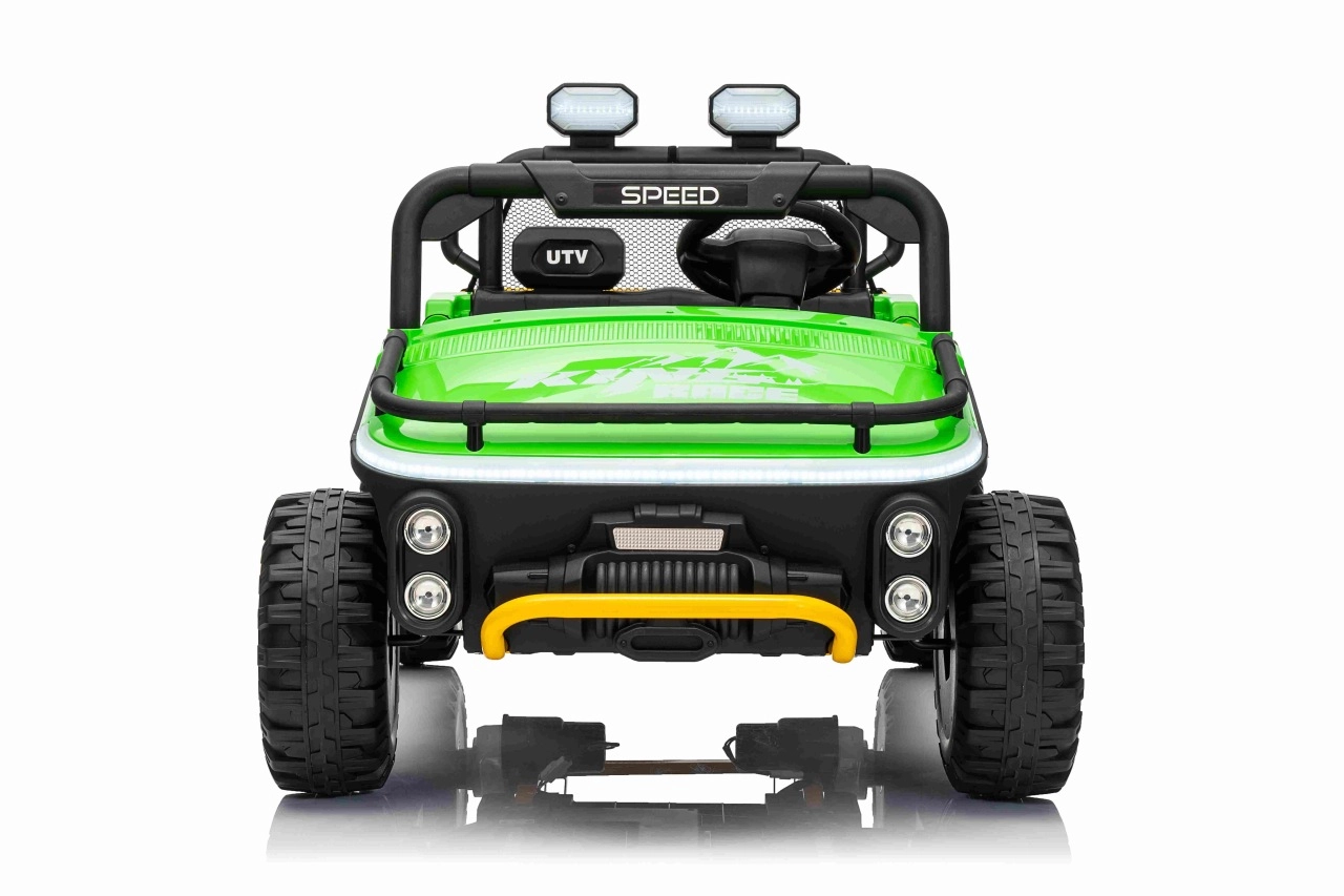 Entdecken Sie Offroad‑Spaß mit dem Kinderfahrzeug UTV SPEED. Dank des starken Antriebs 2×80 W und der hohen Bodenfreiheit von 14 cm meistert es Unebenheiten mit Leichtigkeit, während die großen EVA‑Räder 30×12 cm Vibrationen dämpfen und hervorragenden Grip bieten. Kinder lieben die leuchtenden vorderen LED‑Scheinwerfer und den oberen Lichtbügel, Eltern schätzen die 2,4‑GHz‑Fernsteuerung mit drei Geschwindigkeiten und Not‑Stop‑Taste.