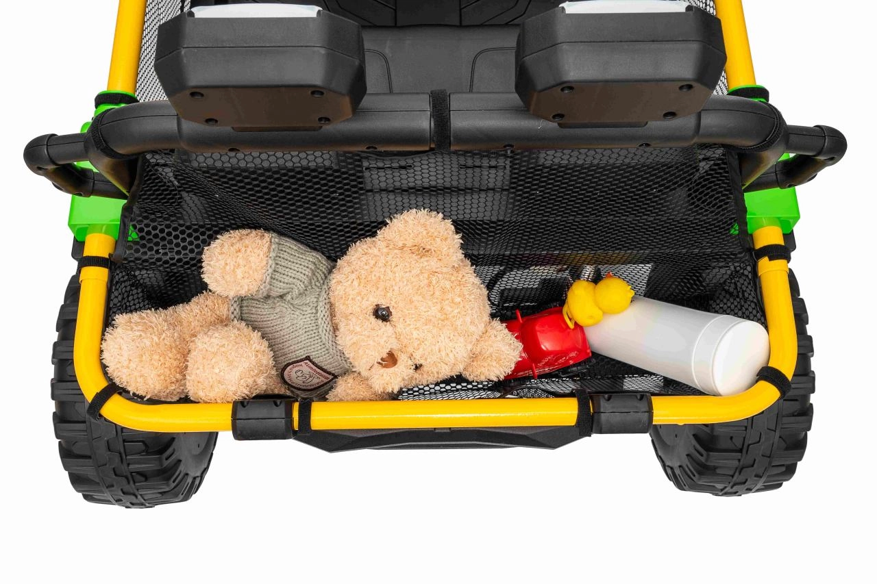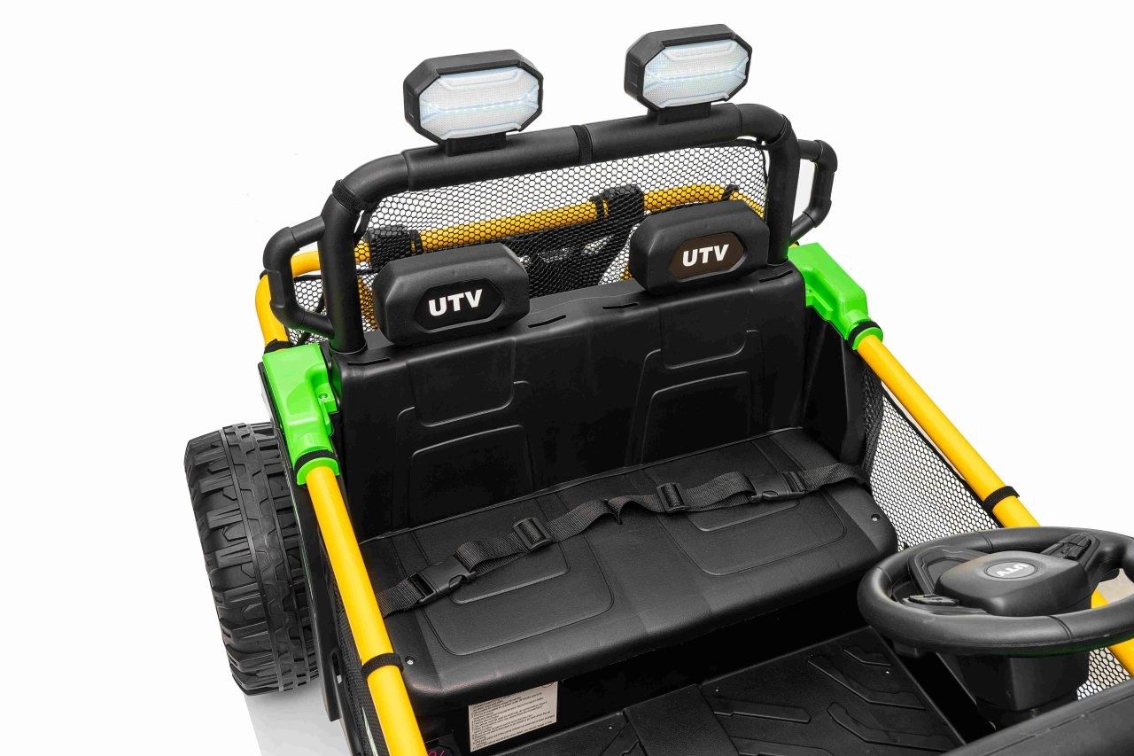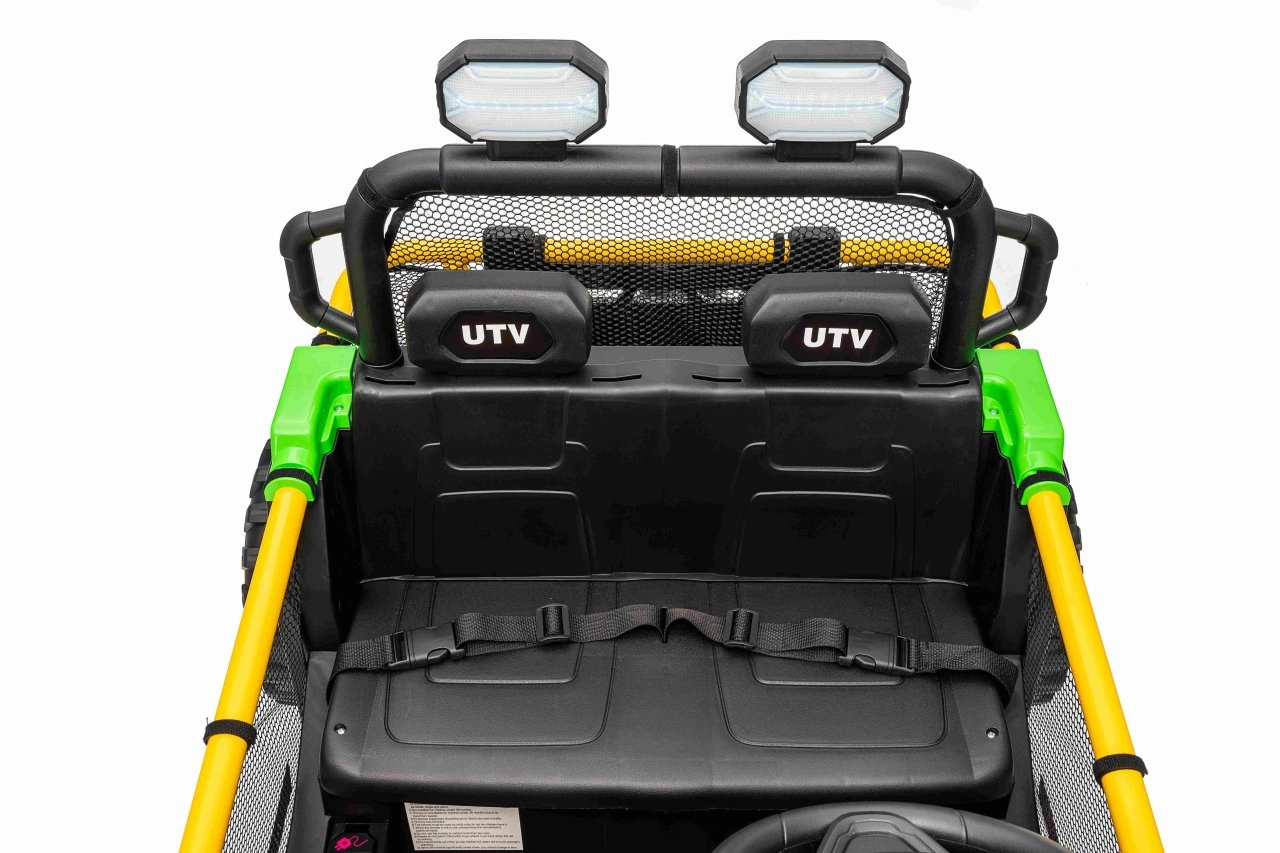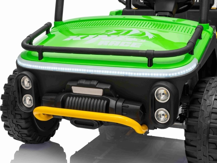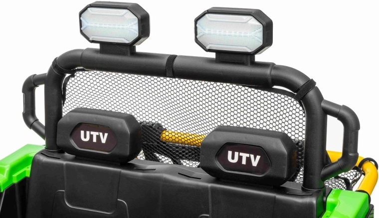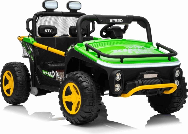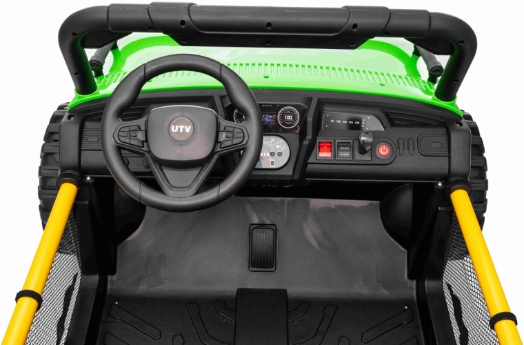 Entdecken Sie Offroad‑Spaß mit dem Kinderfahrzeug UTV SPEED. Dank des starken Antriebs 2×80 W und der hohen Bodenfreiheit von 14 cm meistert es Unebenheiten mit Leichtigkeit, während die großen EVA‑Räder 30×12 cm Vibrationen dämpfen und hervorragenden Grip bieten. Kinder lieben die leuchtenden vorderen LED‑Scheinwerfer und den oberen Lichtbügel, Eltern schätzen die 2,4‑GHz‑Fernsteuerung mit drei Geschwindigkeiten und Not‑Stop‑Taste.