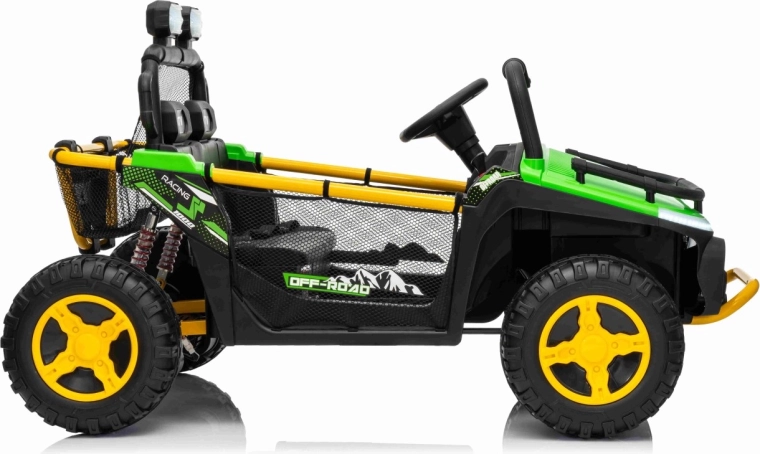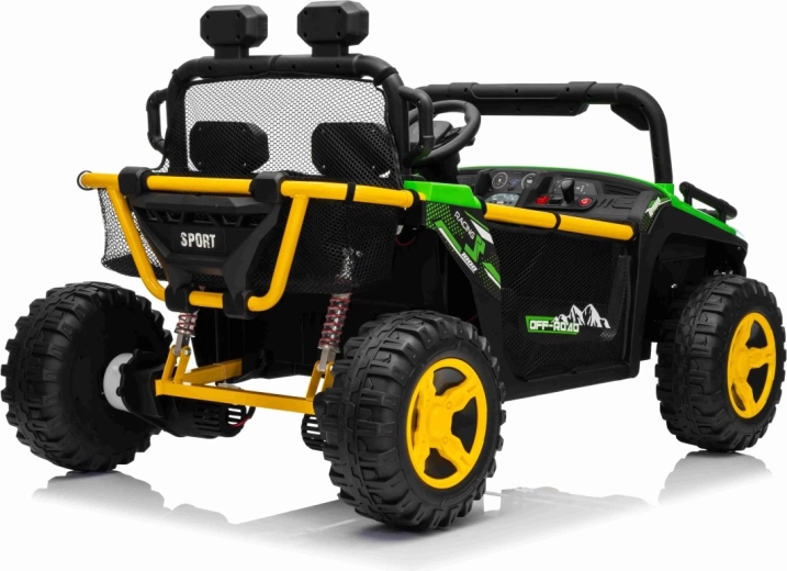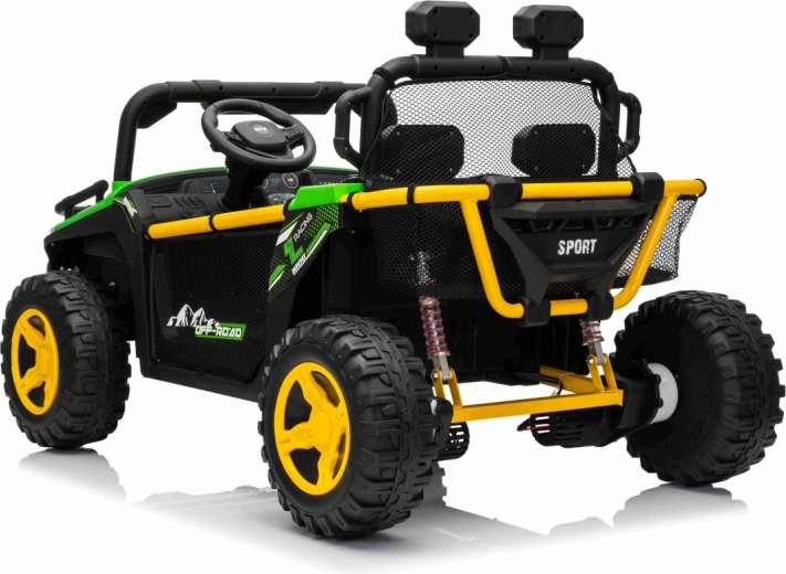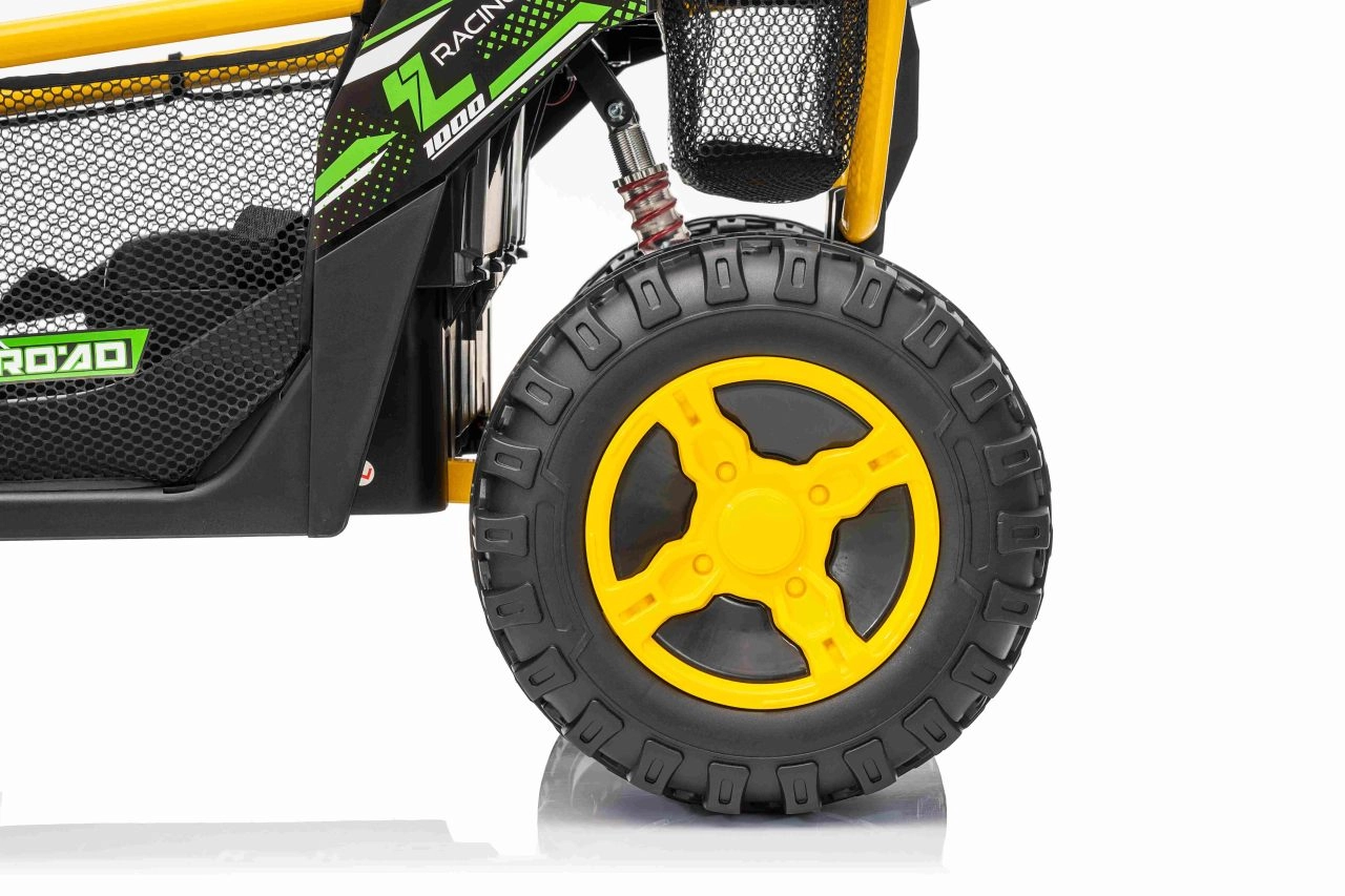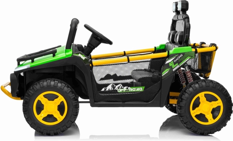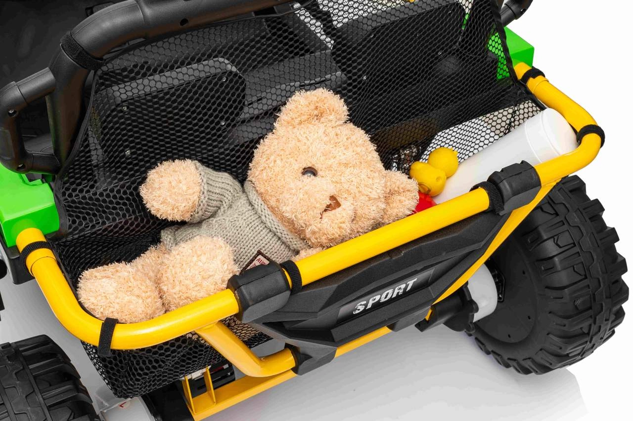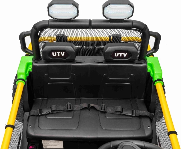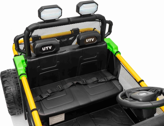Entdecken Sie Offroad‑Spaß mit dem Kinderfahrzeug UTV SPEED. Dank des starken Antriebs 2×80 W und der hohen Bodenfreiheit von 14 cm meistert es Unebenheiten mit Leichtigkeit, während die großen EVA‑Räder 30×12 cm Vibrationen dämpfen und hervorragenden Grip bieten. Kinder lieben die leuchtenden vorderen LED‑Scheinwerfer und den oberen Lichtbügel, Eltern schätzen die 2,4‑GHz‑Fernsteuerung mit drei Geschwindigkeiten und Not‑Stop‑Taste.