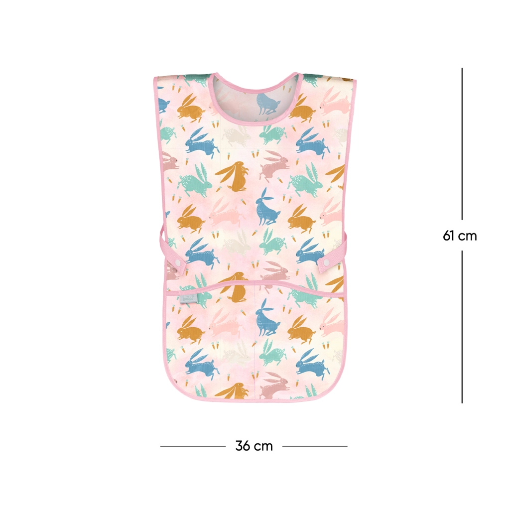 Die Kinderschürze BAAGL Bunny wurde so entworfen, dass sie Kleidung zuverlässig vor Farben, Kleber und Essen schützt. Dank des leicht abwischbaren Materials lässt sie sich nach dem Gebrauch einfach reinigen und ist bereit für das nächste Abenteuer. Das niedliche Motiv mit Häschen und Möhrchen begeistert Kinder und fördert die Freude am Gestalten.