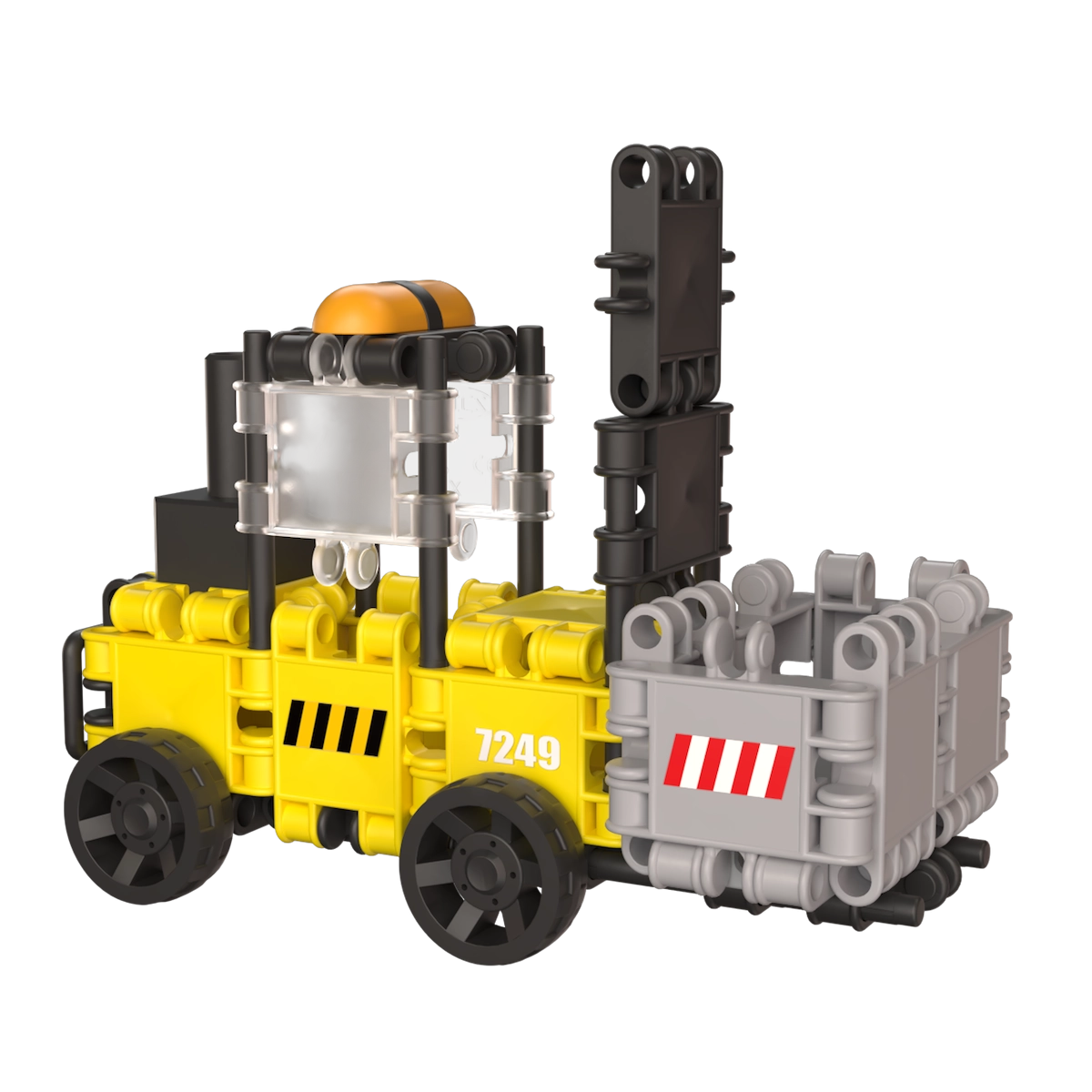 Im Lieferumfang enthalten sind 5 detaillierte Anleitungen für den Bau beliebter Maschinen sowie bewegliche Komponenten, mit denen Kinder „Ladung“ wie auf einer echten Baustelle heben, laden und transportieren können. Der Baukasten fördert Kreativität, räumliches Vorstellungsvermögen und Interesse an Technik.