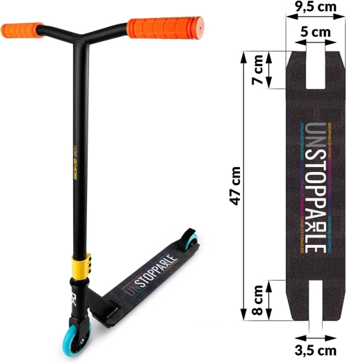 Verbessere deinen Scooter und gewinne Sicherheit bei jedem Schritt. Das Griptape schützt zudem die Deck-Oberfläche vor Abnutzung und verleiht deinem Setup ein sauberes, professionelles Erscheinungsbild.