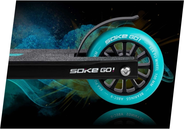 Hochwertige SOKE-Räder in Türkis bieten zuverlässige Performance für den täglichen Einsatz und das Üben von Tricks. Die Polyurethan-Mischung 88A balanciert Tempo und Kontrolle, während ABEC‑9-Lager sanfte Anfahrten und minimalen Rollwiderstand sicherstellen.
