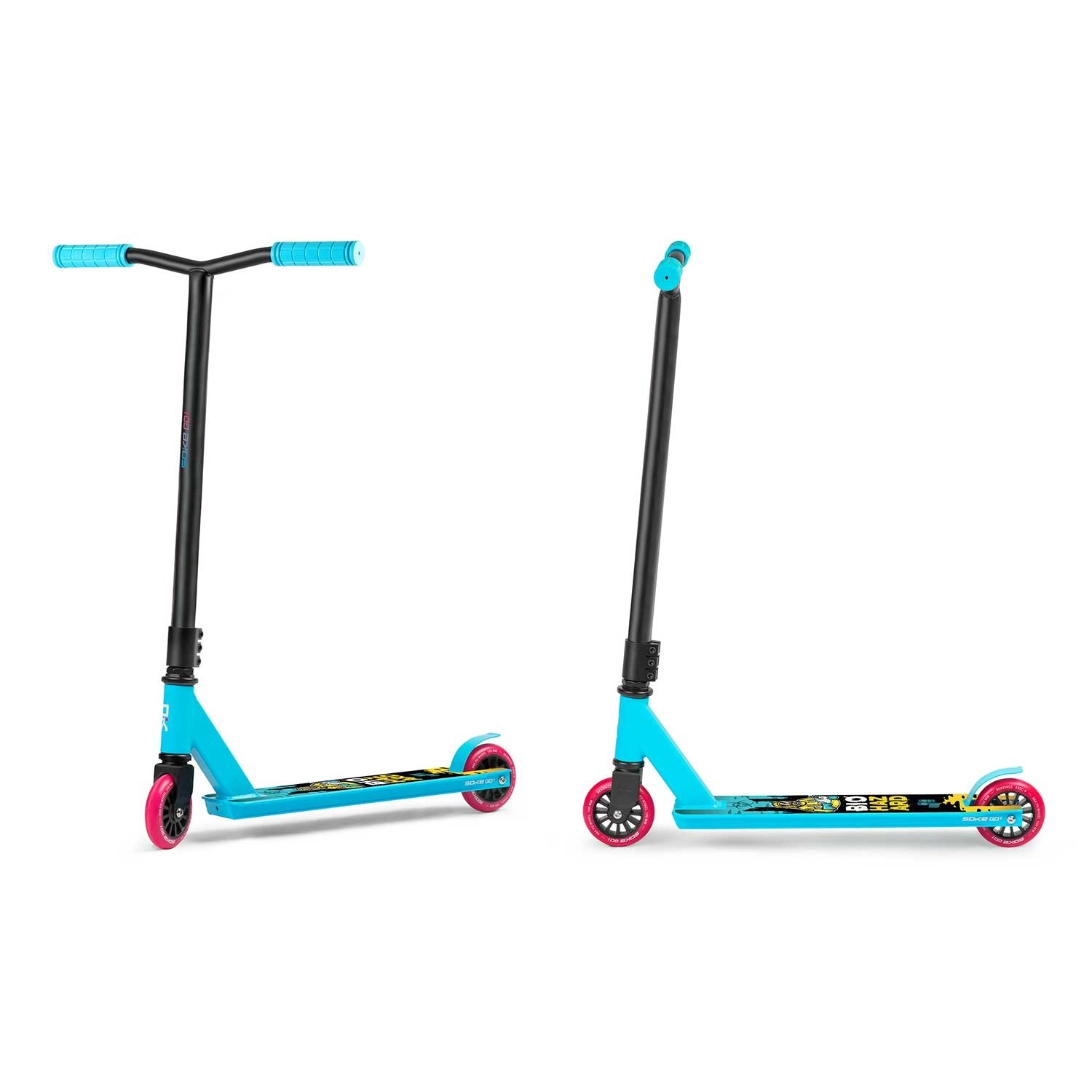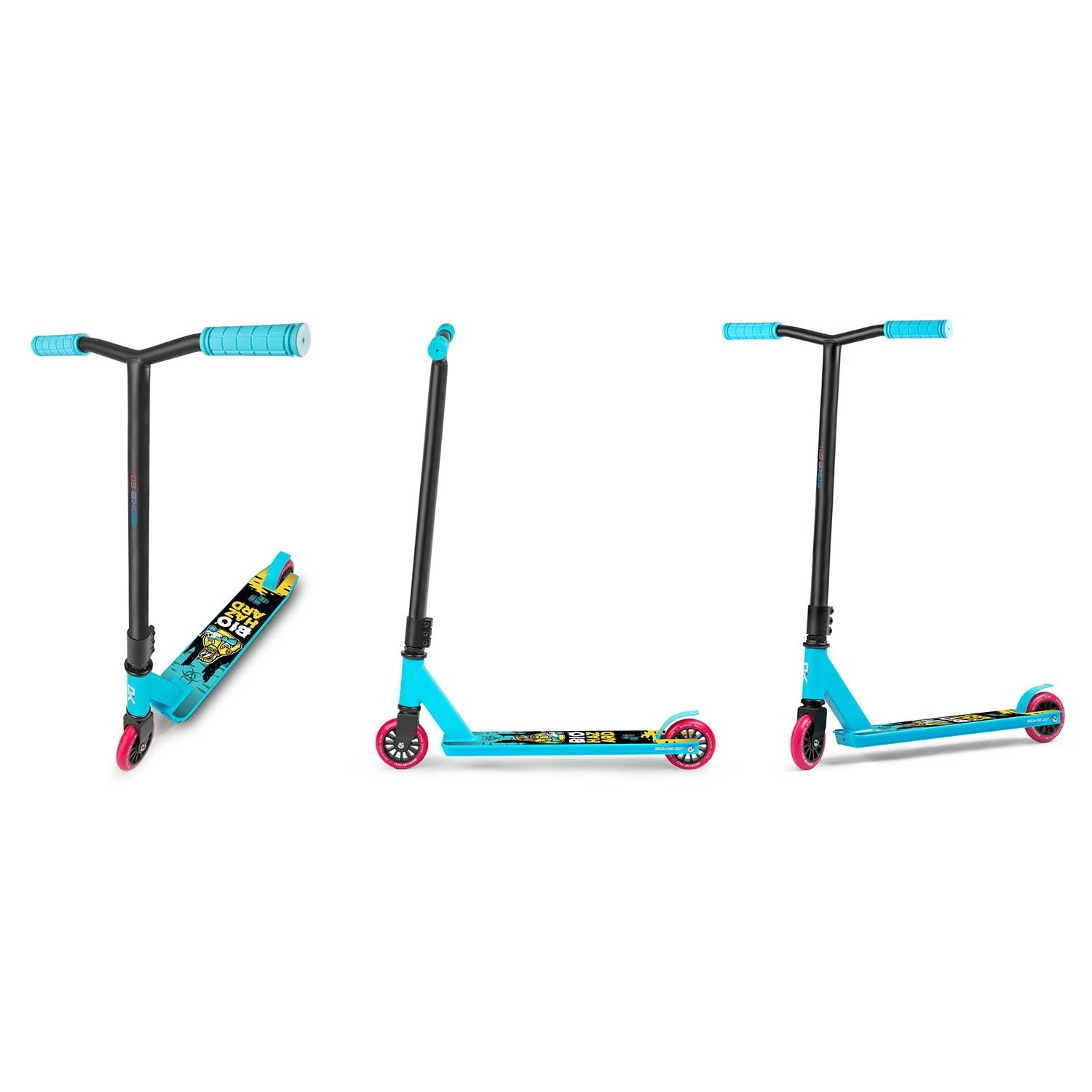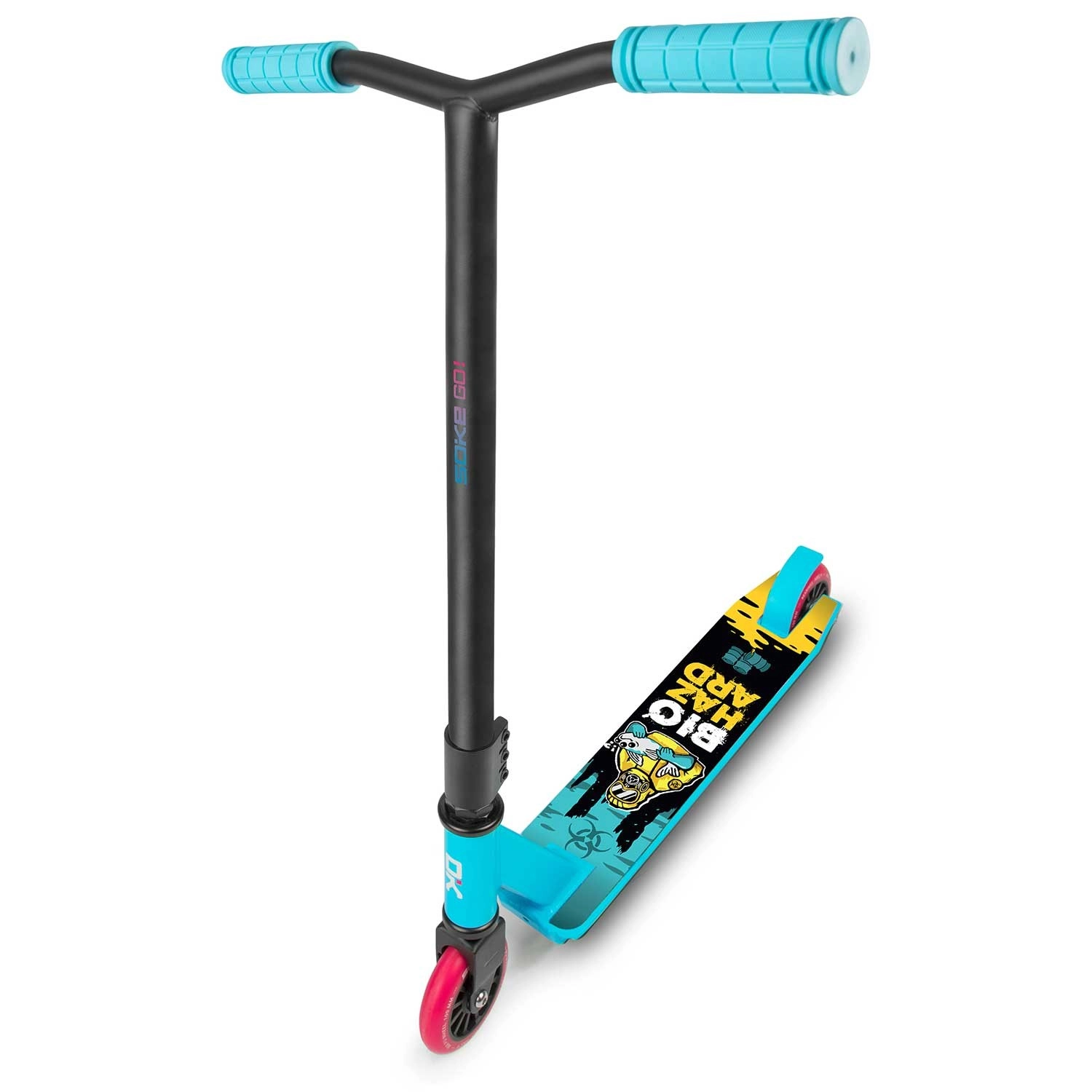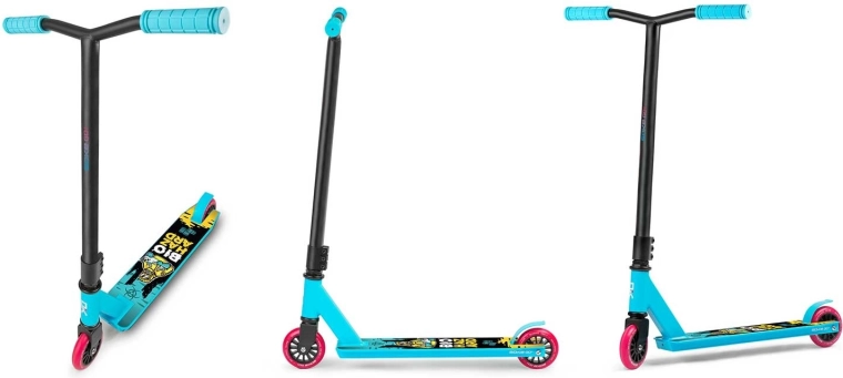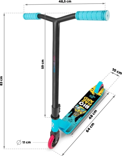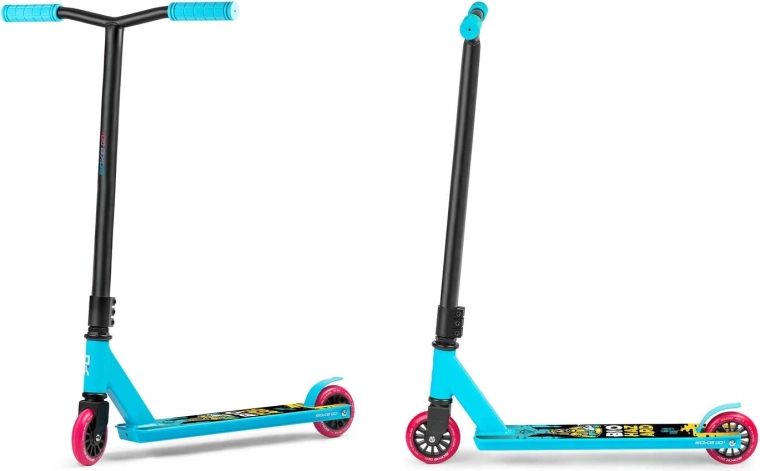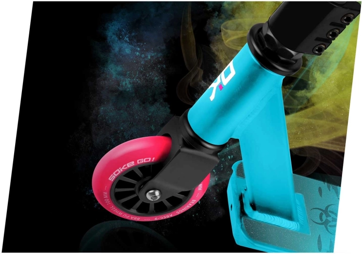 Das Modell SOKE GO! in Türkis ist für Sicherheit bei Tricks, schnelle Beschleunigung und lange Lebensdauer ausgelegt. Breite Y-Lenker mit bequemen TPR-Griffen 145 mm geben hervorragende Stabilität, während die steife Aluminium-Triple-Klemme alles fest zusammenhält. Das geringe Gewicht von 2,9 kg hilft bei Whips und Spins.