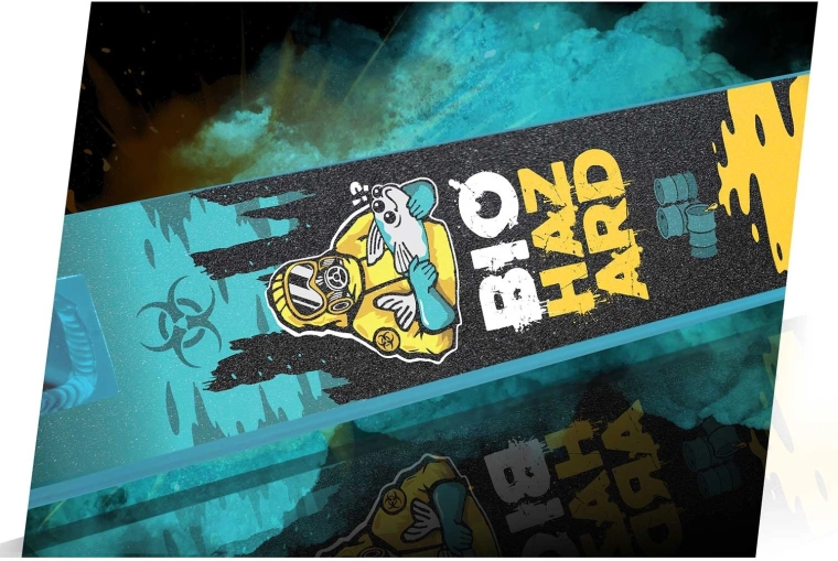 Das Deck mit Peg-Cut (48 x 10 cm) ist für Pegs vorbereitet und besitzt eine einteilige Konstruktion mit hochwertigen Schweißnähten. ABEC-9 Lager aus verchromtem Stahl mit Gummidichtung sorgen für einen ruhigen Lauf und Schutz vor Staub und Wasser. PU-Rollen 100 x 24 mm, Härte 88A mit schmalem Profil für höhere Geschwindigkeit und Speichenkern dämpfen kleine Vibrationen hervorragend und halten die Spur.