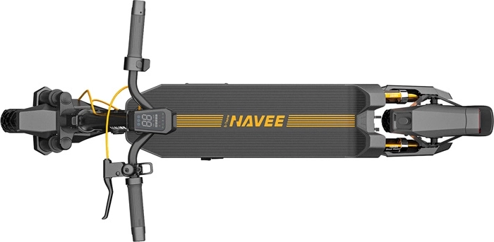 Intelligente Funktionen wie Apple Find My zur einfachen Ortung des Rollers und Proximity Unlock für automatisches Entsperren via Bluetooth werden durch die Navee-App ergänzt, die Rekuperationseinstellungen, Fernverriegelung und ein übersichtliches Dashboard bietet. Stilvolle goldene Details unterstreichen das moderne Design und die Premium-Verarbeitung.
