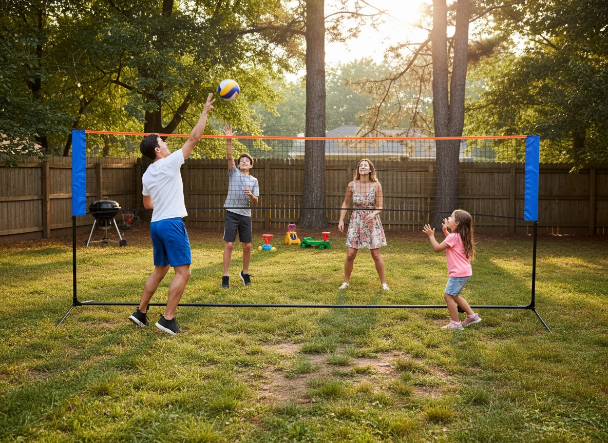 Universelles Sportnetz für Badminton, Volleyball und Tennis – macht überall ein Spielfeld: im Garten, am Strand oder in der Schule. Dank der verstellbaren Höhe 95 / 155 / 225 cm, der stabilen Metallkonstruktion und der praktischen Tragetasche ist es schnell auf- und abgebaut. Die Netzgröße 305 × 103 cm ist ideal für Familienspaß und Training.