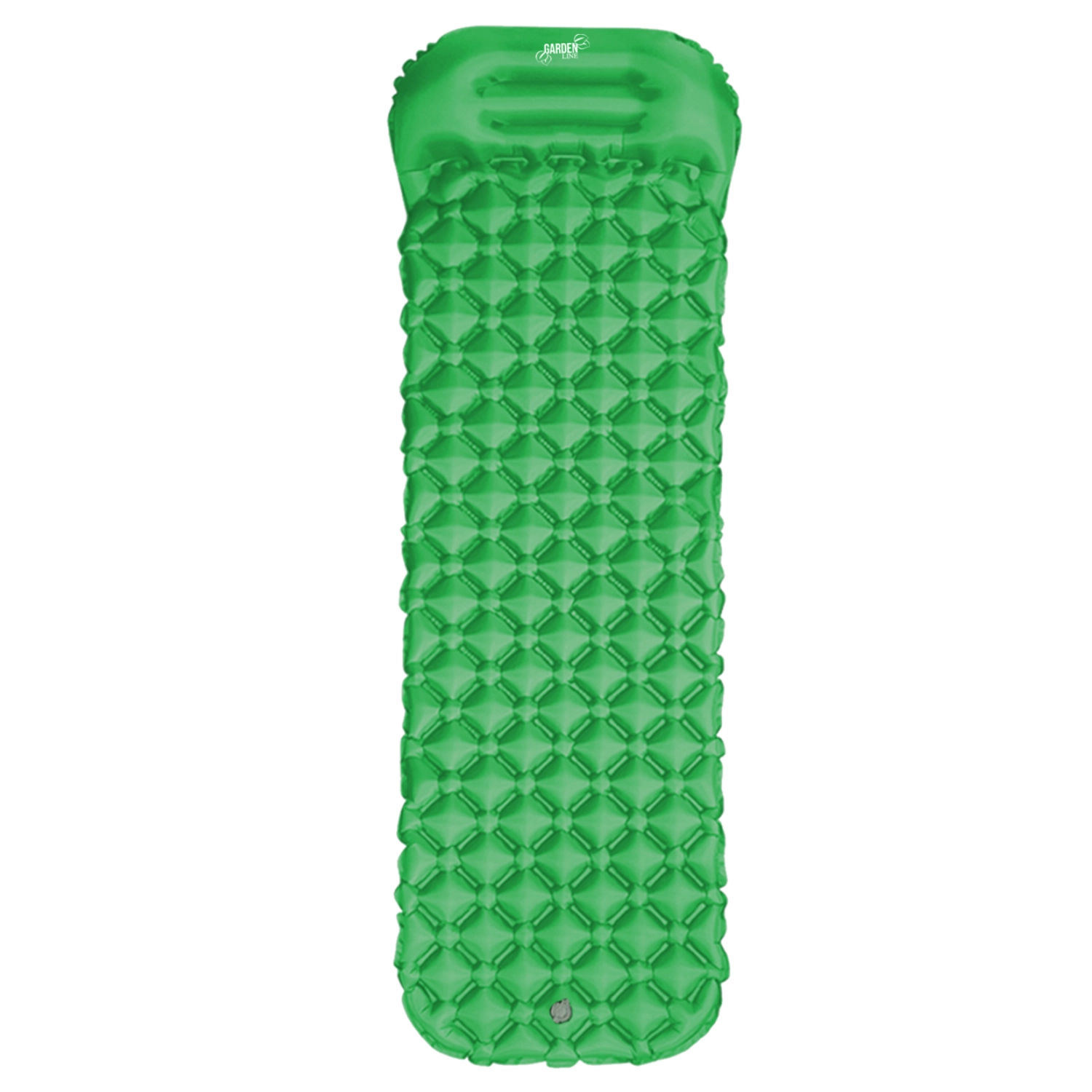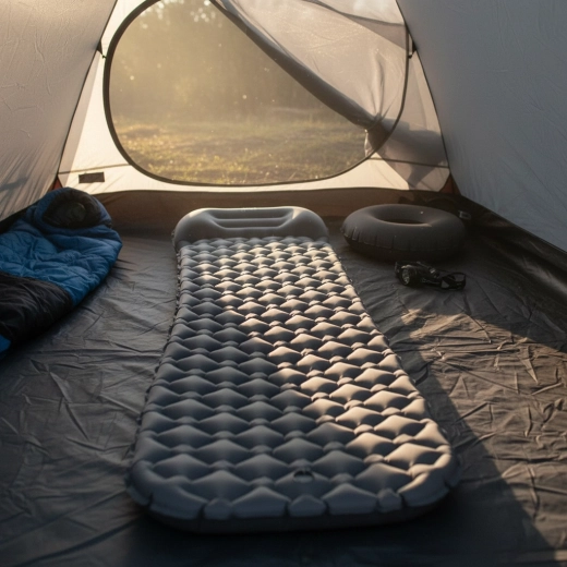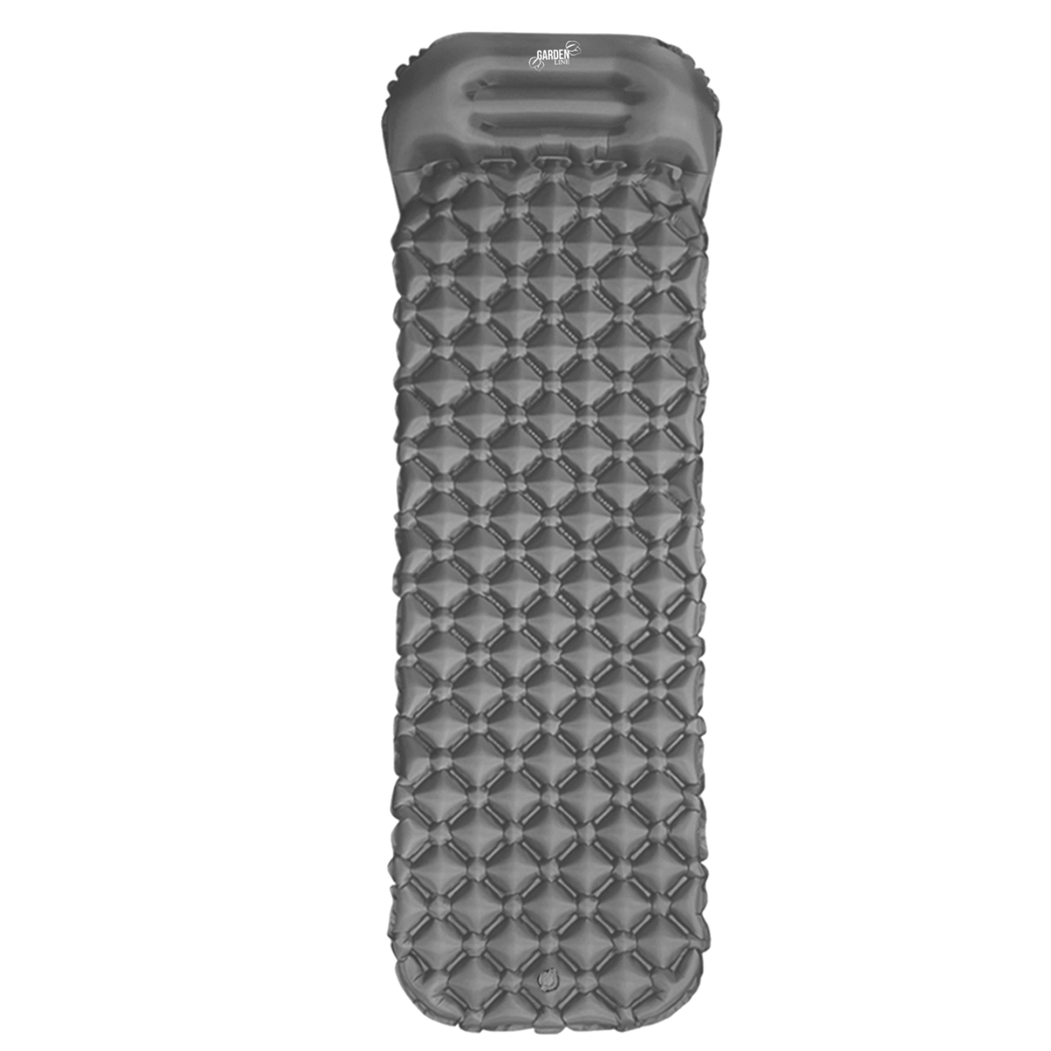 Ultraleichte aufblasbare Isomatte mit integriertem Kissen für erholsamen Schlaf unterwegs. Dank 40D Ripstop mit TPU ist sie abriebfest, hervorragend gegen Bodenkälte isoliert und kompakt sowie leicht (470 g) – ideal fürs Campen, Trekking und Radtouren.