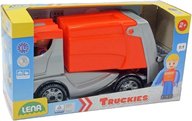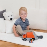 Das Fahrzeug verfügt über eine aufklappbare Kabine mit beweglicher Fahrerfigur und einen hinteren Container, der sich leicht bedienen lässt. Kinder genießen realistisches Beladen und Auskippen des „Mülls“, trainieren ihre Motorik und lernen grundlegende Prinzipien von Recycling und Ordnungsliebe kennen.