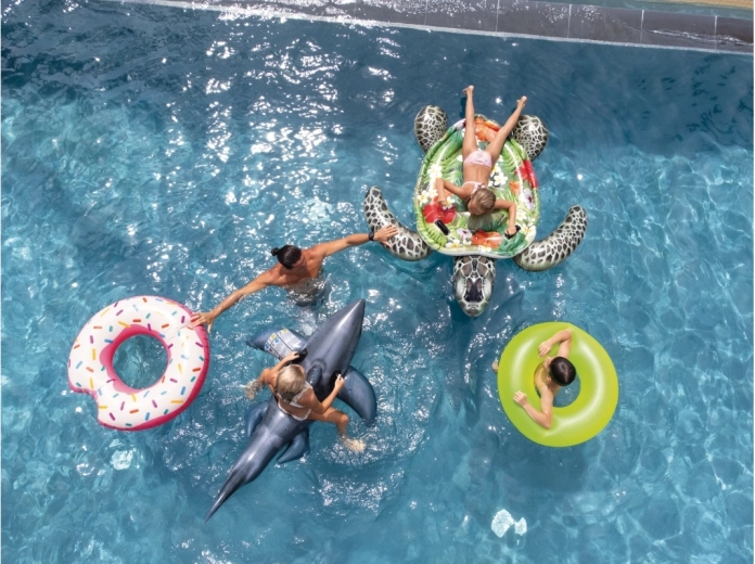 Die breite Oberseite bietet Komfort beim Ausruhen und viel Platz für Wasserspaß.