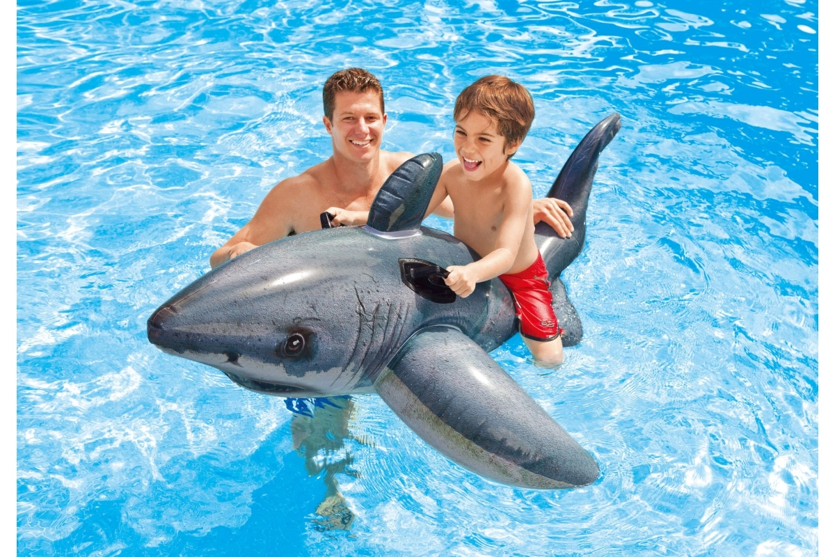 Der aufblasbare Hai von INTEX ist die ideale Wahl für sommerlichen Wasserspaß. Sein geformter Körper sorgt für Komfort beim Entspannen und Spielen, während zwei seitliche Griffe sicheren Halt für Kinder und Erwachsene bieten. Dank der robusten Konstruktion hält der Schwimmer gut die Richtung und erhöht die Stabilität auf der Wasseroberfläche.