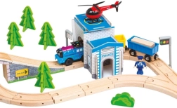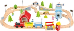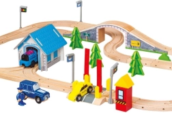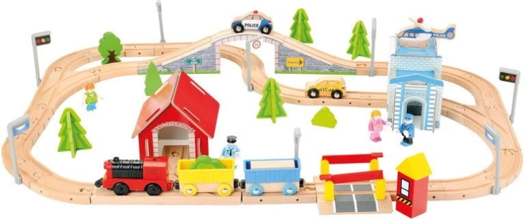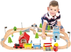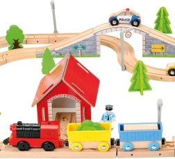 Erleben Sie endlosen Spielspaß mit dieser umfangreichen Holzeisenbahn, die mit Weichen, einem Bahnübergang und einer Brücke ausgestattet ist. Die Eisenbahnstrecke ist mit zahlreichen Umgebungsaccessoires, Bauten und Fahrzeugen ausgestattet, die für eine lebendige Spielewelt sorgen. Beobachten Sie begeistert, wie die elektrisch betriebene Lokomotive über die Strecke rast. Dieses Set bietet mehrere Stunden Unterhaltung und ist ideal für Gruppen von Kindern.